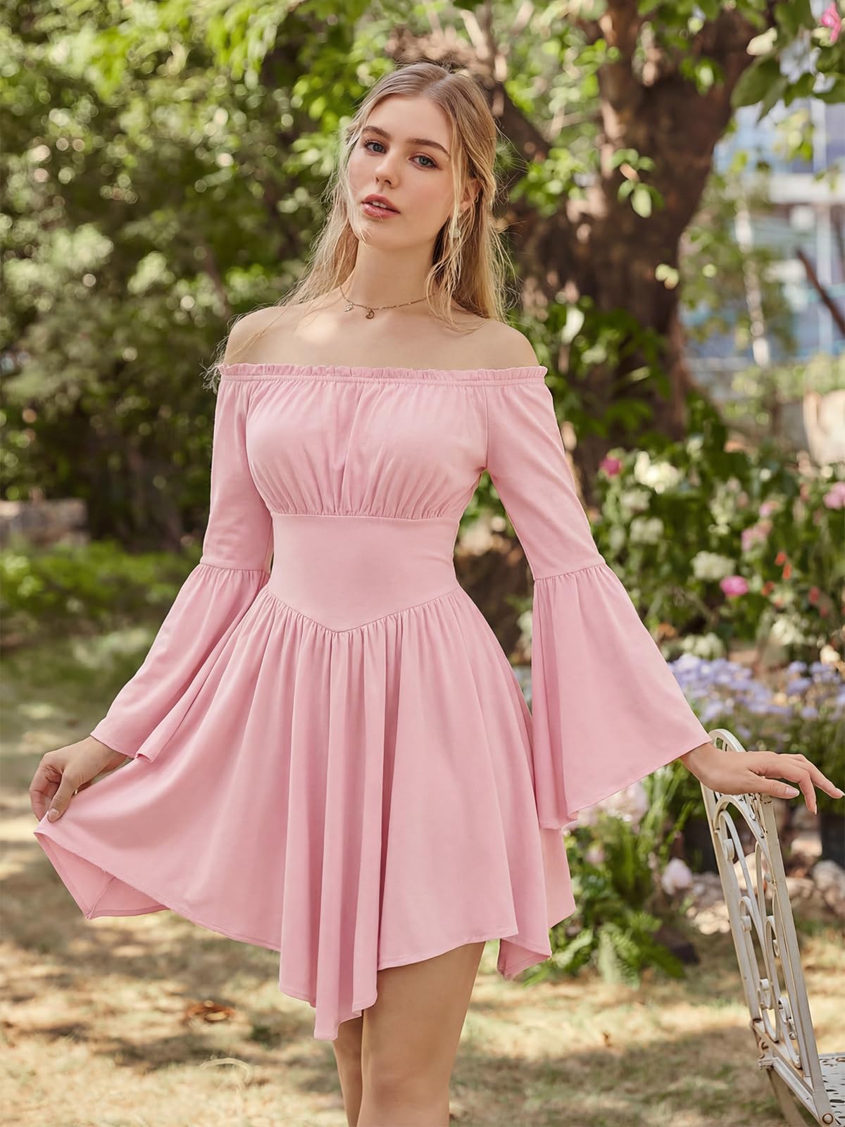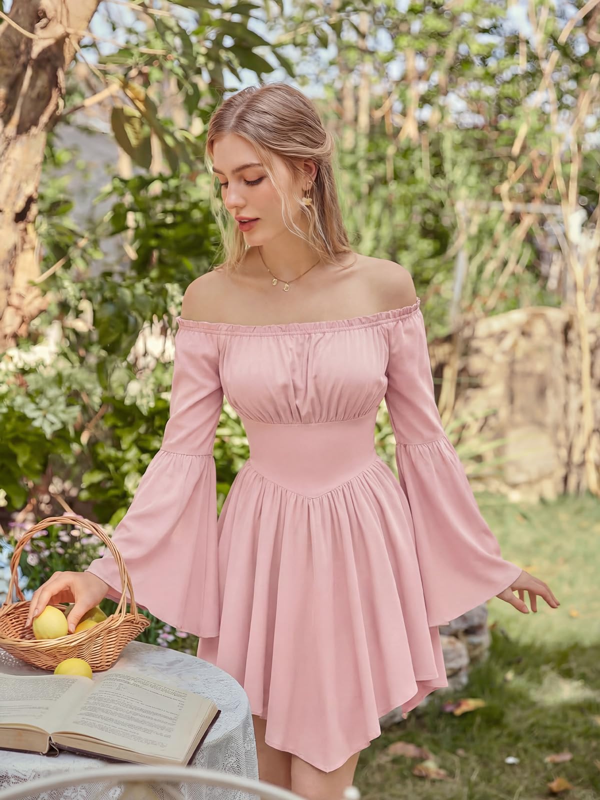 INSPIRATION - This women's off-shoulder dress features a stunning Renaissance-inspired irregular hem and beautiful agaric lace decoration at the neckline, creating a romantic and feminine silhouette