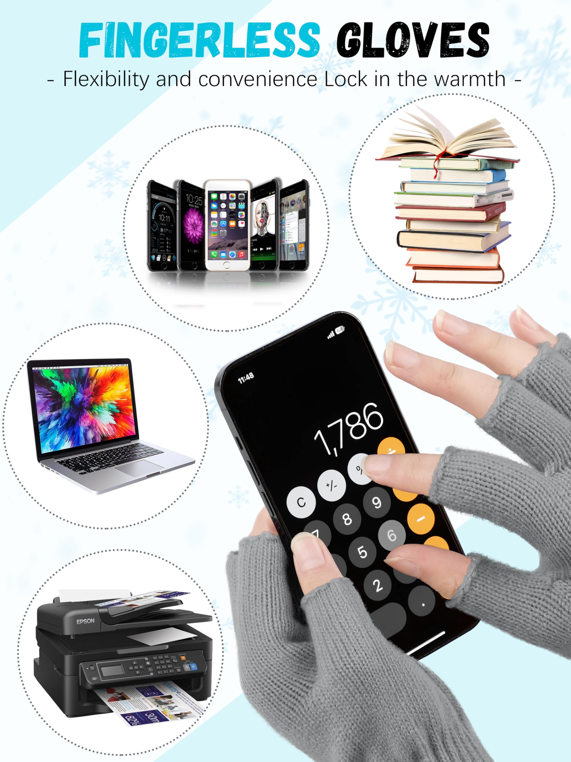 THICKENED FINGERLESS GLOVES:These winter gloves are knitted with cashmere-like fabrics, which are soft to the touch and comfortable to wear