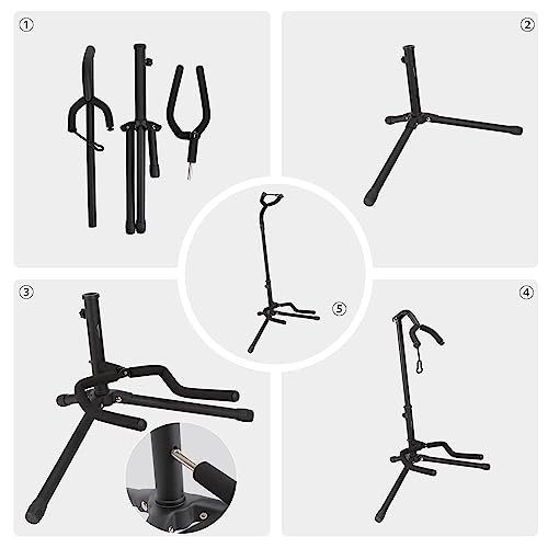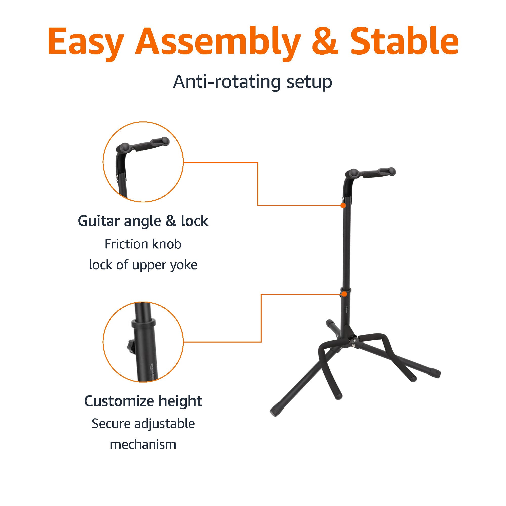 Tripod guitar stand for storing and displaying electric and acoustic guitars, bass guitars, and 26-inch ukuleles (Note: not suitable for jazz bass or jazz guitar)