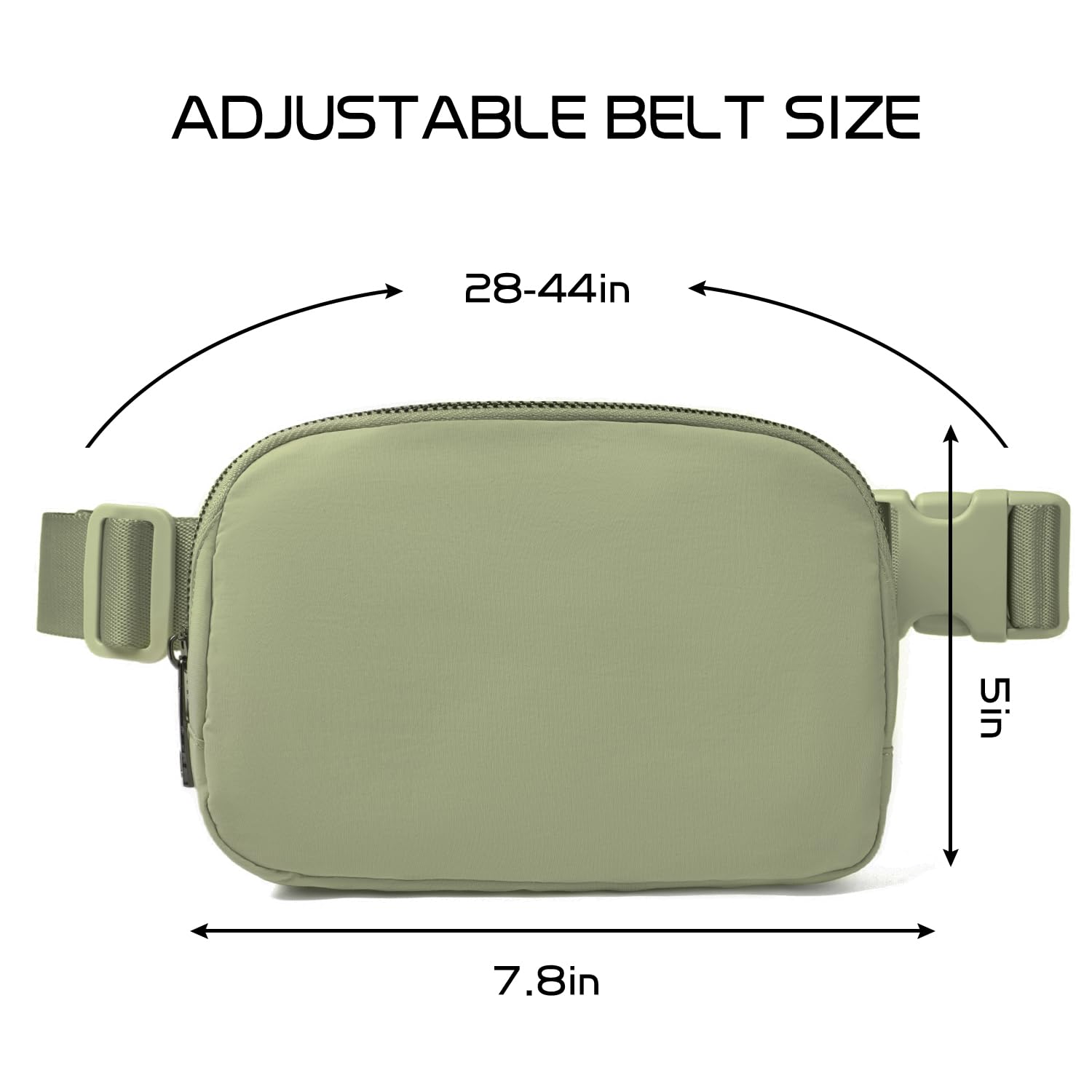 [Adjustable Strap]: The fanny pack has a durable removable buckle, thick adjustable straps with an adjustable range of 28 - 44 inches, so it can be used as a belt bag, chest bag, crossbody bag. It can be easily and quickly adjusted to the length that you need and it will stay at the length that you choose without loosening.