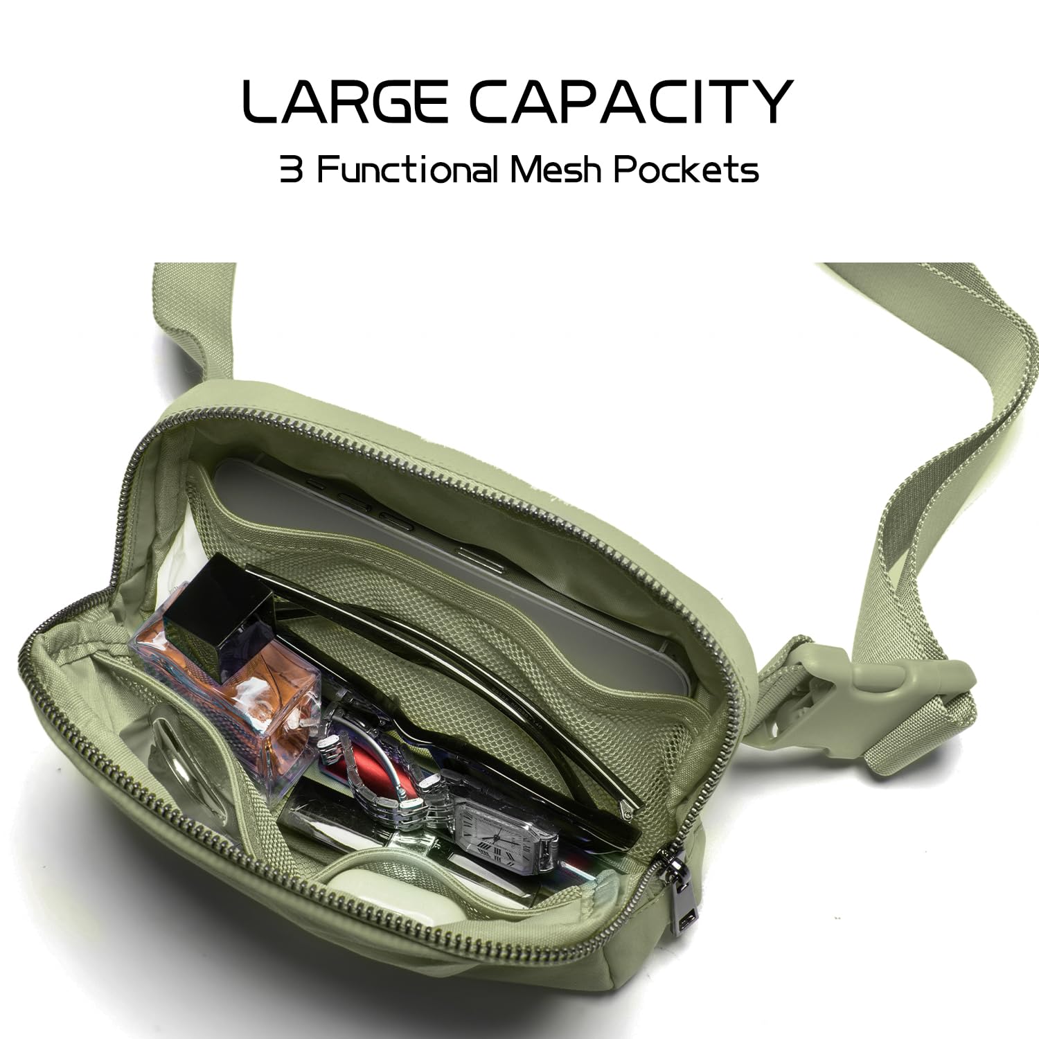 [Product Features]: The fanny pack is made of a skin-friendly clothing material (nylon). It is lightweight, easy to clean and water resistant. it features durable double zip pockets and adjustable straps, as well as three mesh pockets to store items that are prone to scratching, such as mobile phones and watches etc.