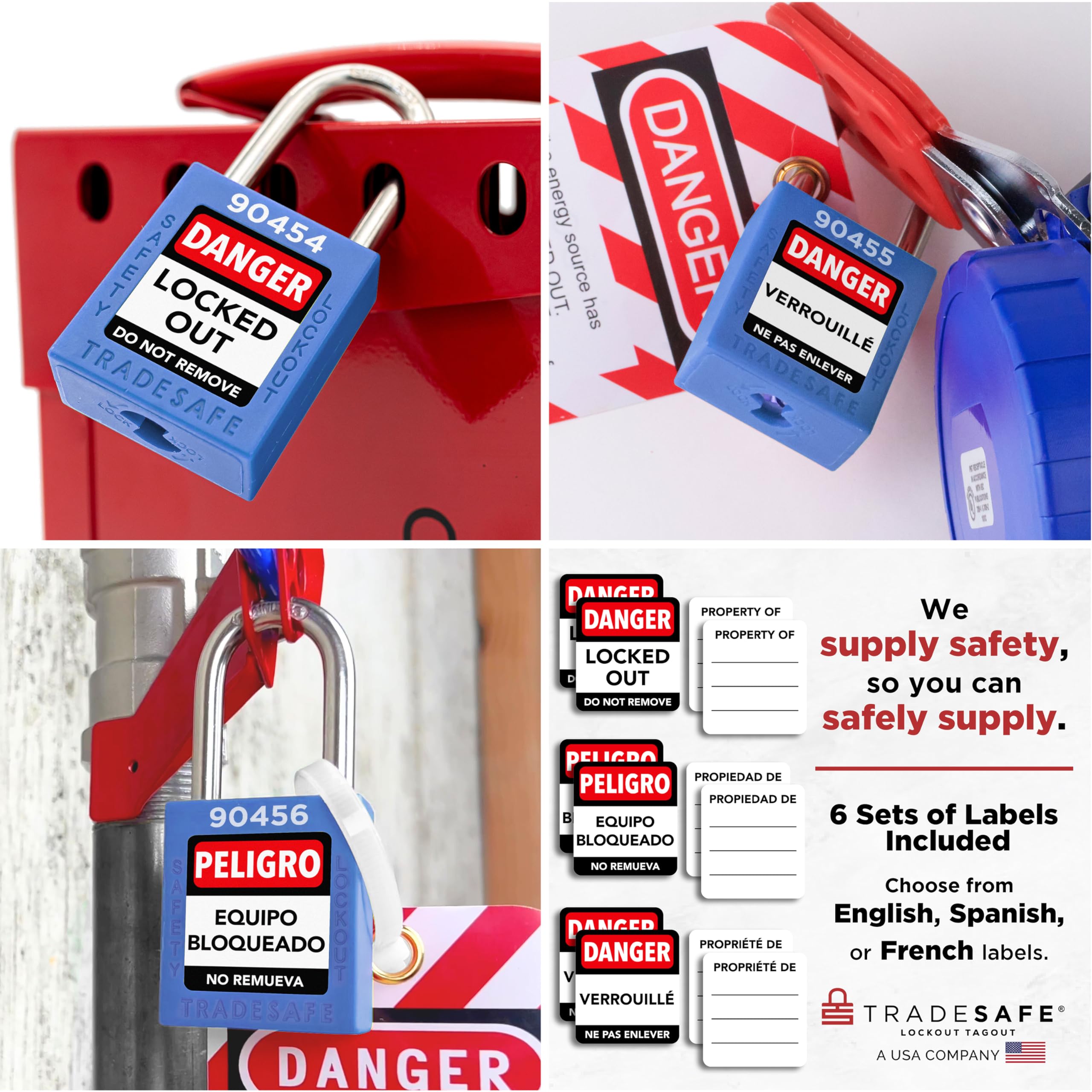 Multilingual Labels - Each safety lockout lock comes with 2 sets of labels in English, Spanish, and French; “Danger Locked Out Do Not Remove” warning label for the front side and a spacious writable label for the back side