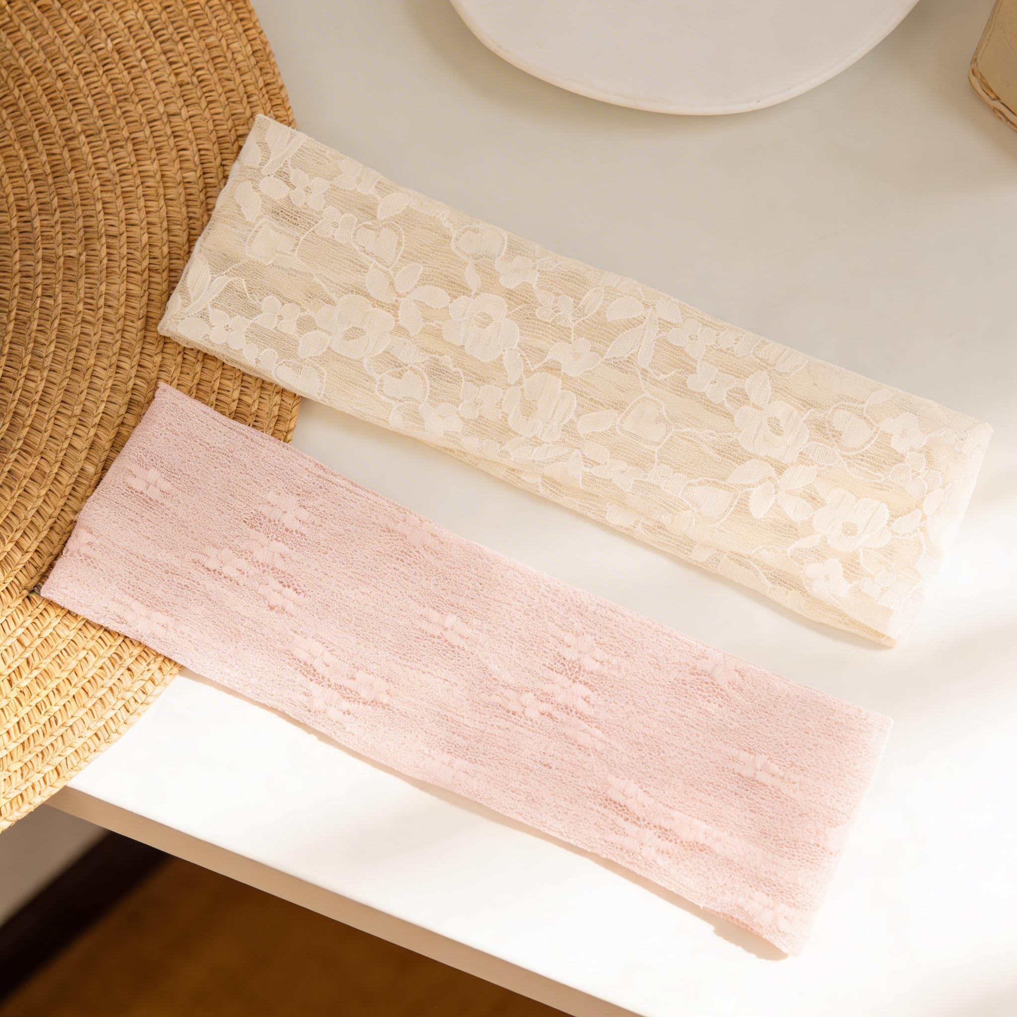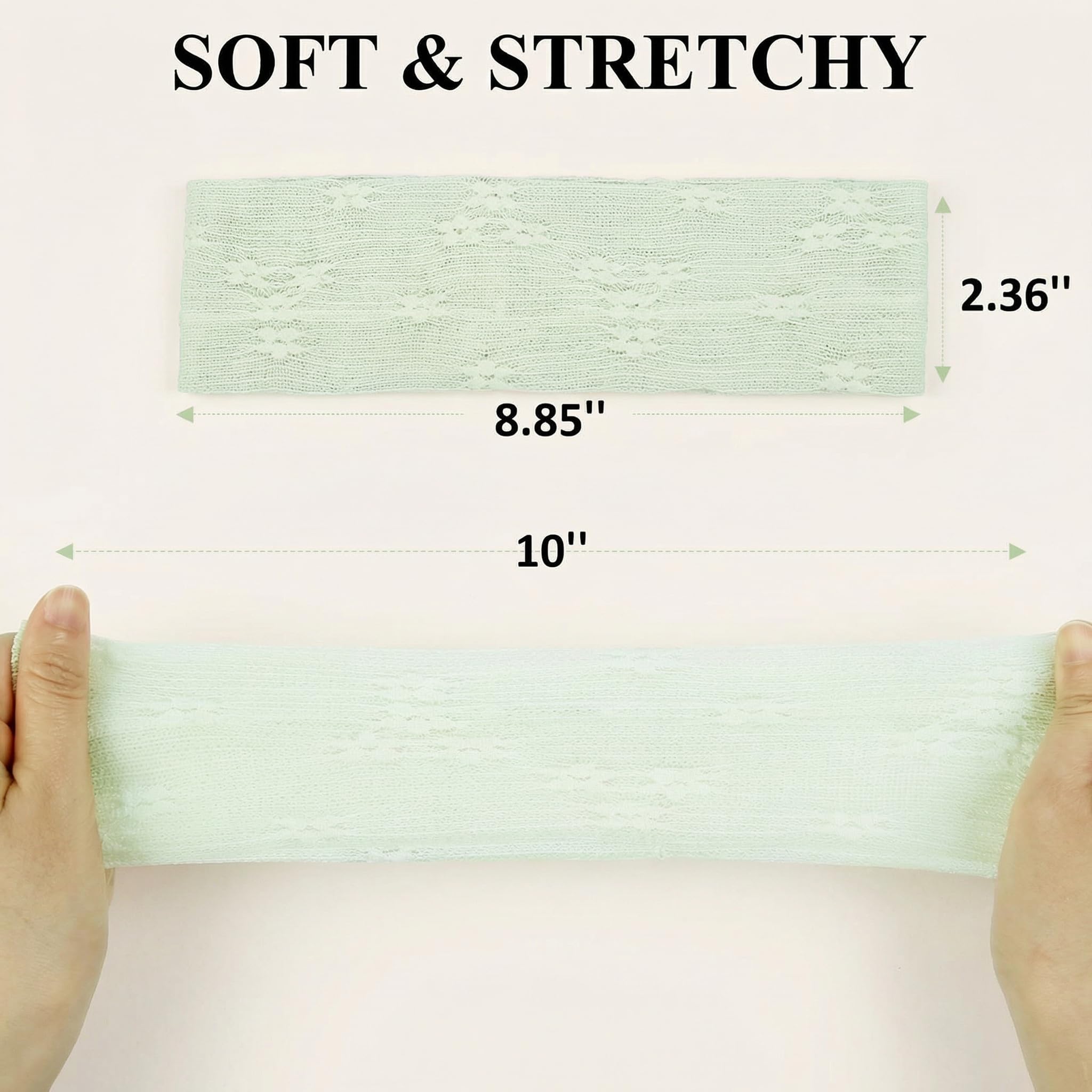 6-COLOR VARIETY PACK: This cute headbands set includes black, pink, green, blue, beige, and white headbands. The diverse palette ensures you can match your lace hair accessory with any spring/summer dress or casual outfit for vacations and weekend picnics.