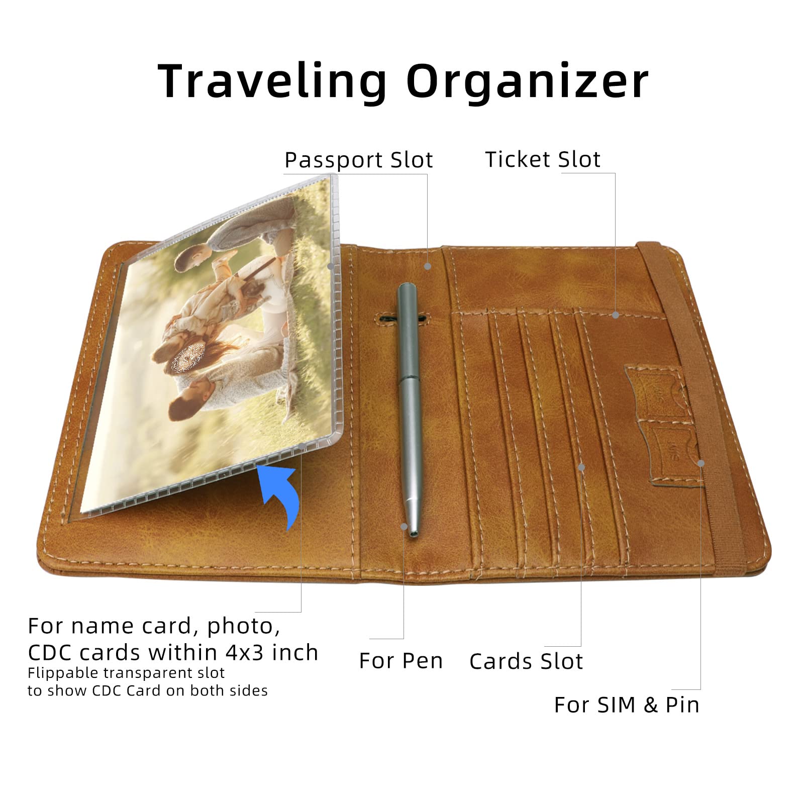 Practical Travel Accessories: This passport cover and card wallet has multiple slots to hold business cards, credit cards, cash, boarding passes sufficiently, two SIM slots for SIM cards, a pen slot for pen. Allows convenient access to information during boarding and transit