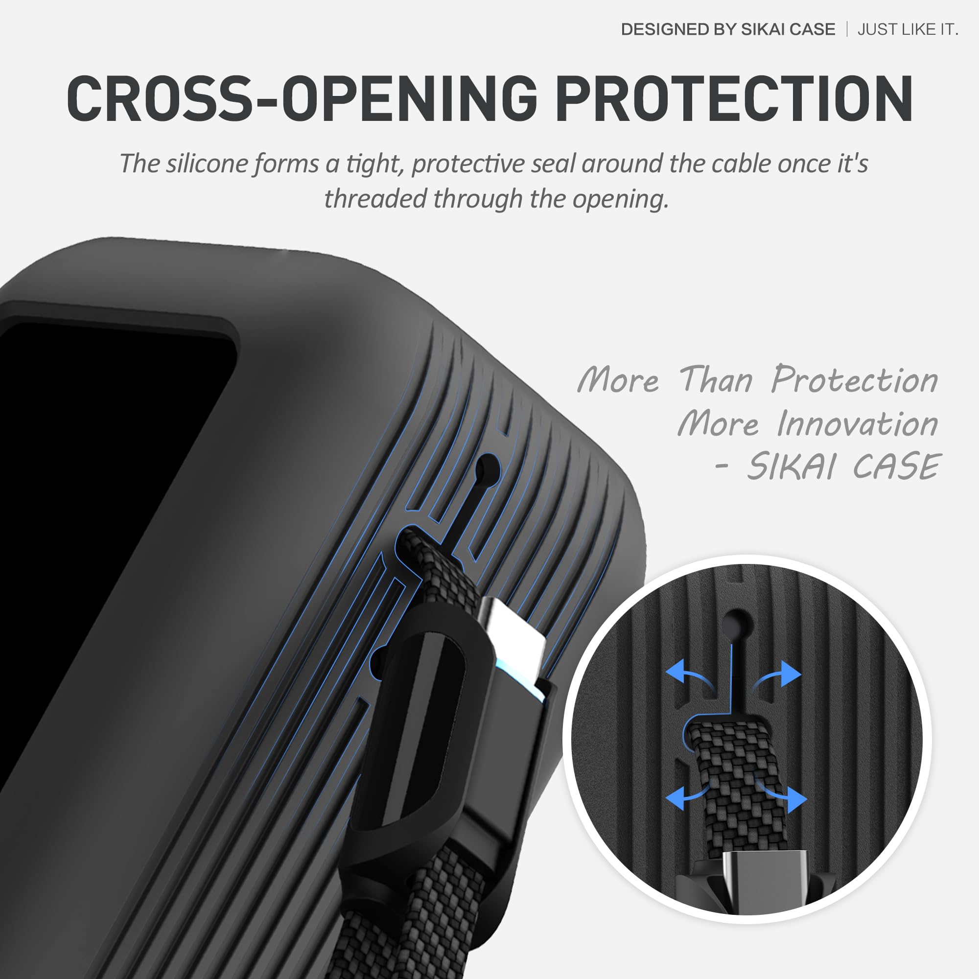 Made of High-Quality Silicone: The SIKAI CASE offers not only a comfortable grip but also features a one-of-a-kind "cross-shaped opening" offers a tailored protective solution for connection point between retractable cables and power banks. The silicone will conform to the power bank once the cable is threaded through the opening, creating a tight and protective fit.