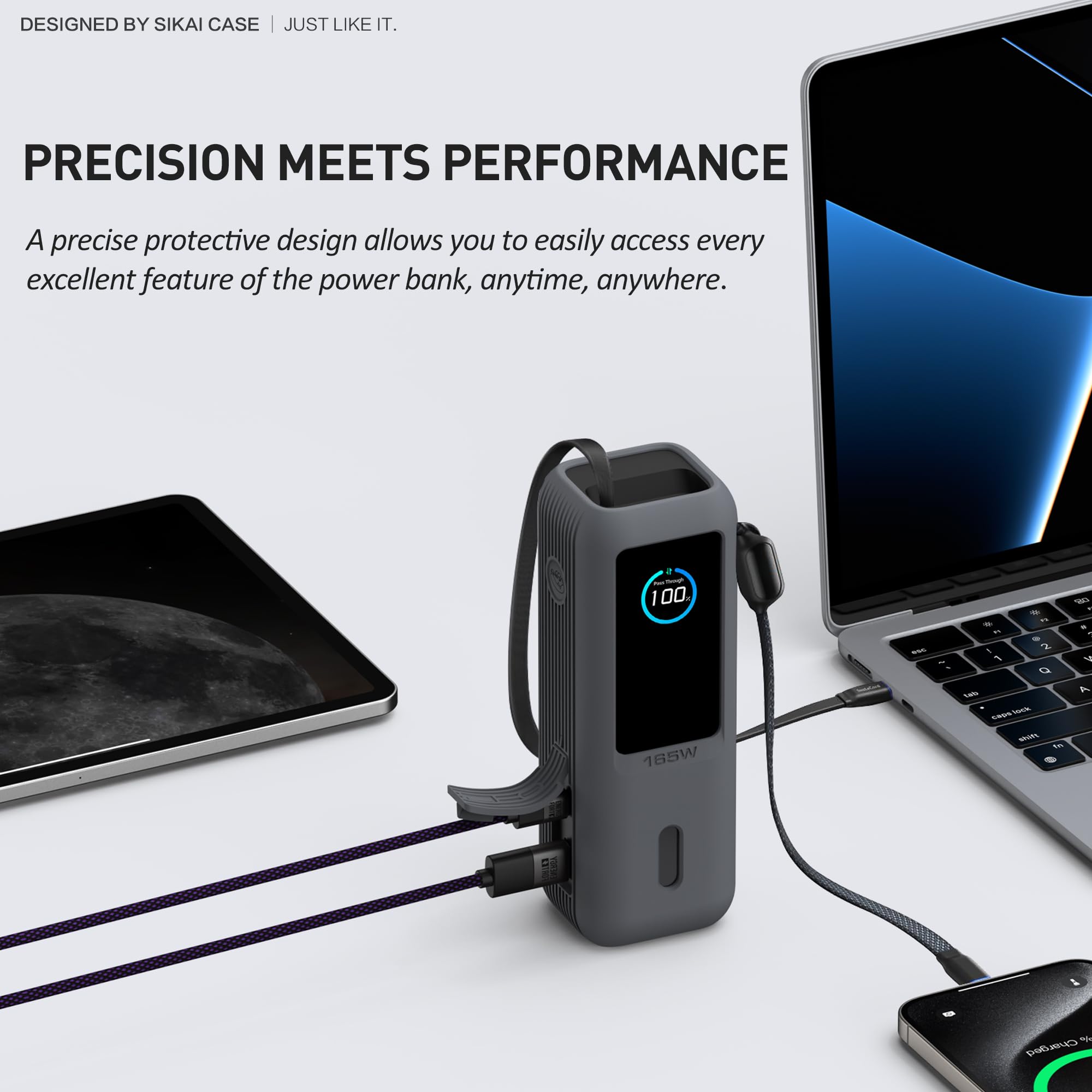 Tailored Protection for Your Anker Laptop Power Bank 165W:Introducing our SIKAI CASE silicone case custom-designed for the Anker Laptop Power Bank 165W, with precise cutouts perfectly matching every detail of your power bank. Whether it's big display, data transfer ports, or rated information, everything is easily accessible. No more worrying about scratches or wear and tear on your power bank!
