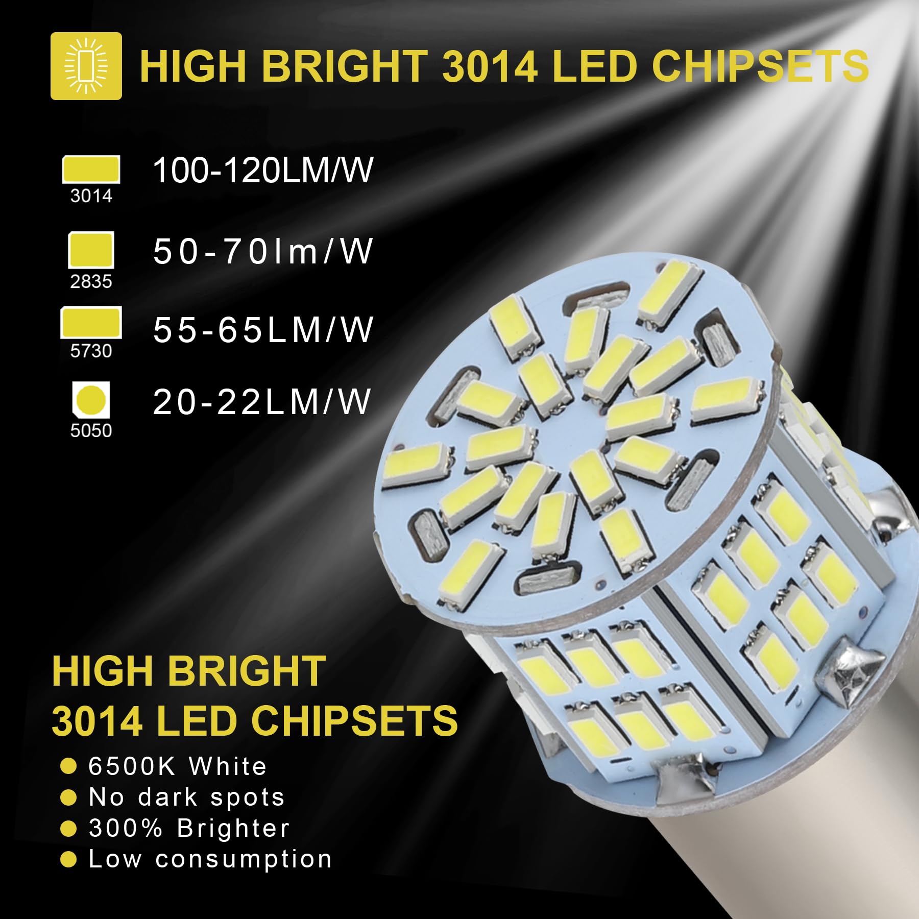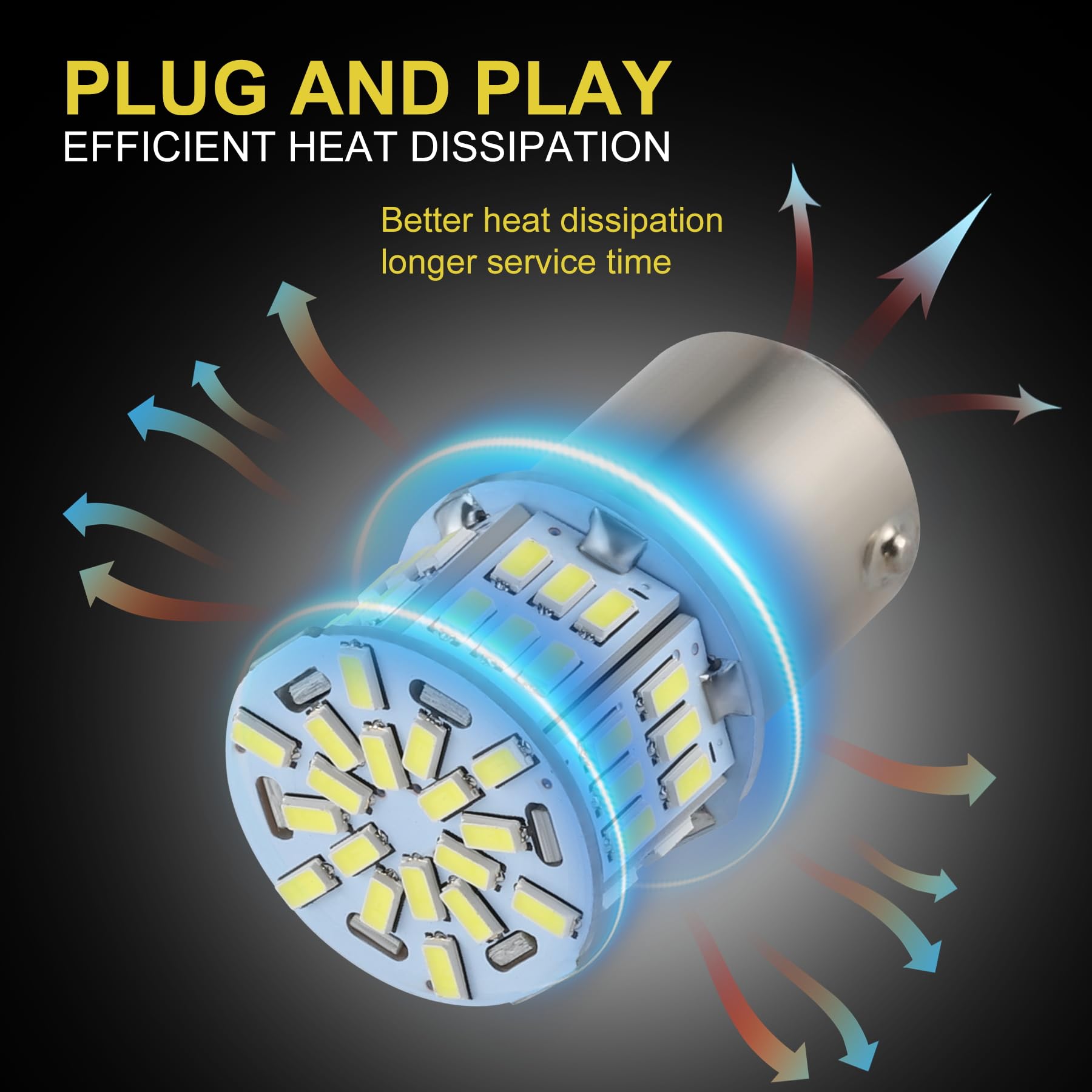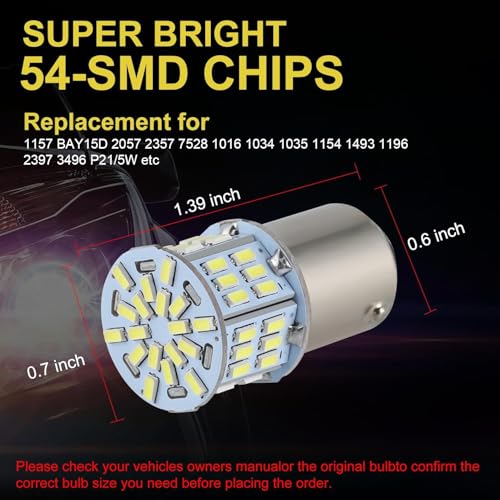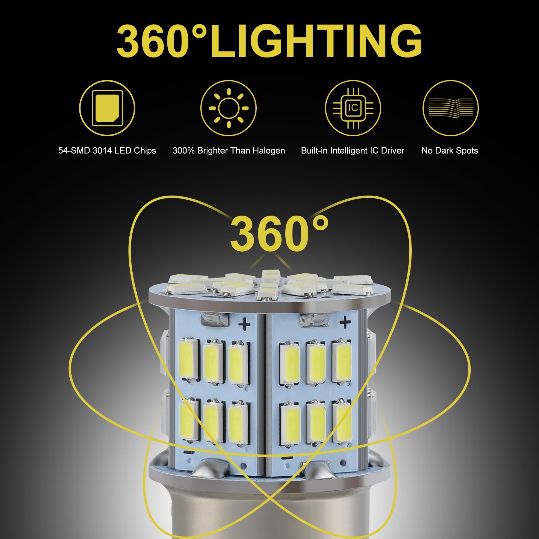 300% Brighter: Our 1157 bulb has 54 pieces of 3014 led chips on it, 360 degree lighting angle, no blind spot.
