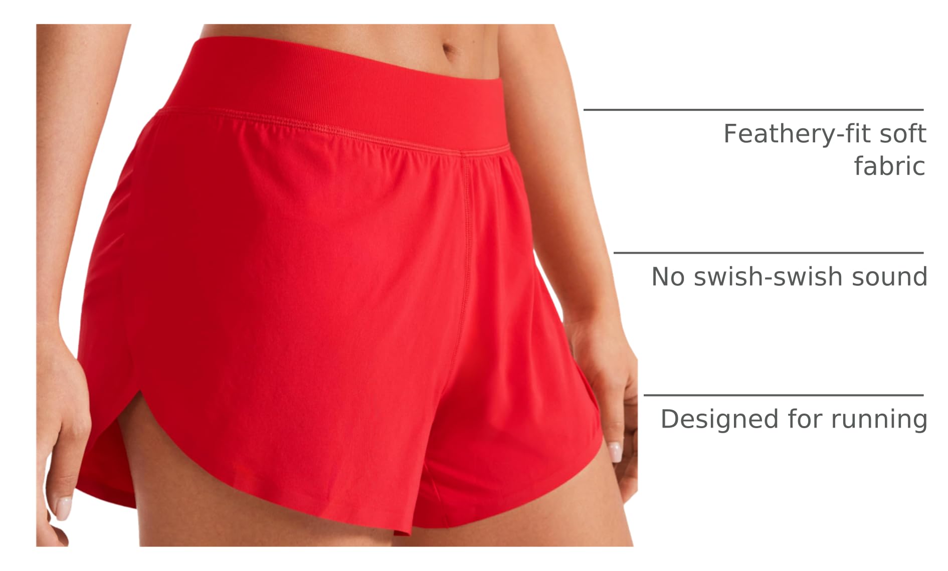 Feathery-Fit Soft Fabric: Ultra soft, weightless and quick dry, slightly stretchy, no swish-swish sound