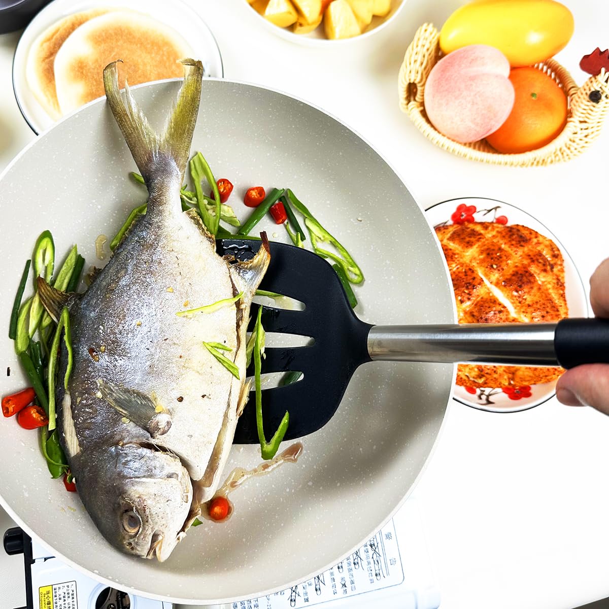✅【Heat-Resistant and 600°F Non-Stick 】: Our kitchen spatula protects your non-stick pan coating and cooks without any noise! The spatula is made of high-quality food-grade silicone and stainless steel material, can withstand -104°F~600°F/-40°C~315°C!