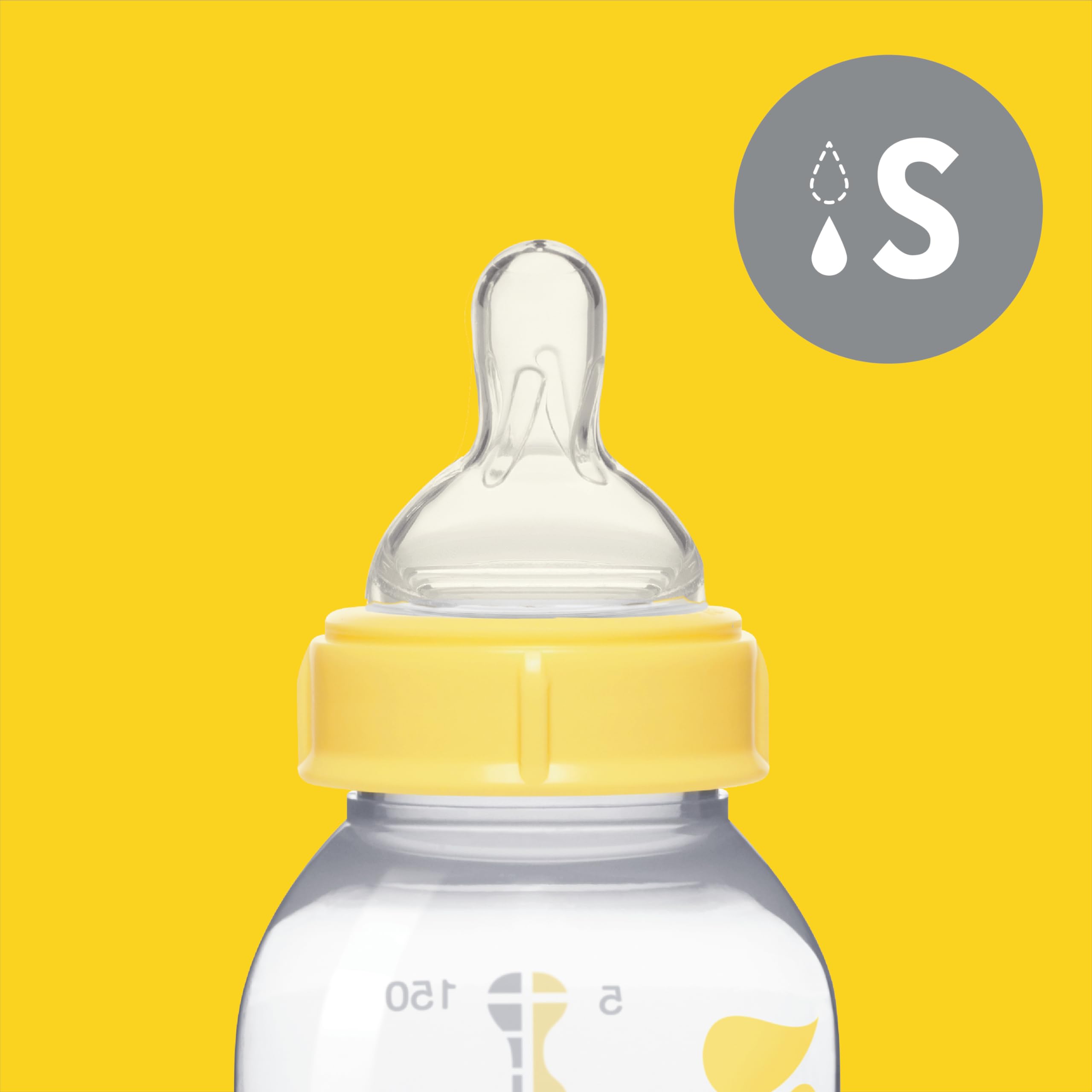CUSTOMIZED FLOW OPTIONS: Each bottle comes with a silicone teat. Available in two different sizes: 5oz / 150ml with Slow (S) flow or 8oz / 250ml with Medium (M) flow. Spare nipples can be purchased separately.