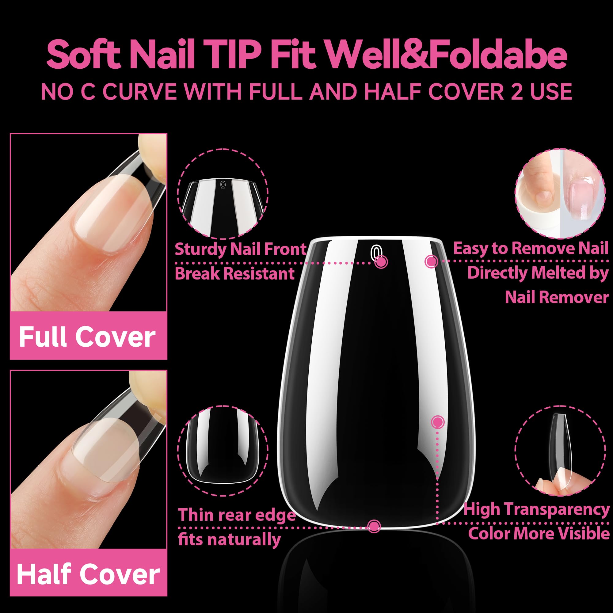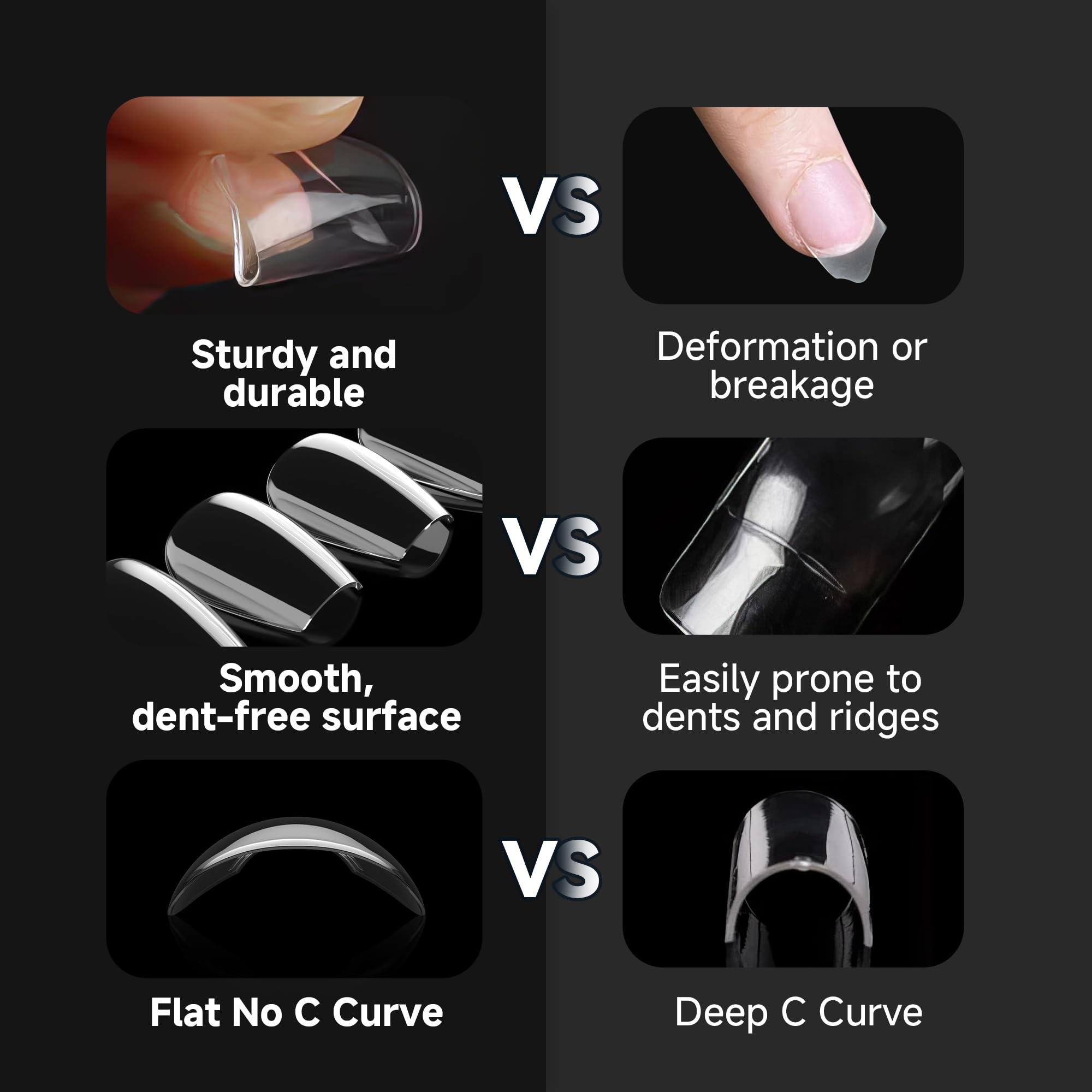 ❤️Traceless Soft Gel Coffin Tips: Achieve your dream nails with ease using our gelly soft coffin tip. They're easy to press, trim, and paint, leaving no trace or creases and flat no c curve. Real DIY manicure gel tips!