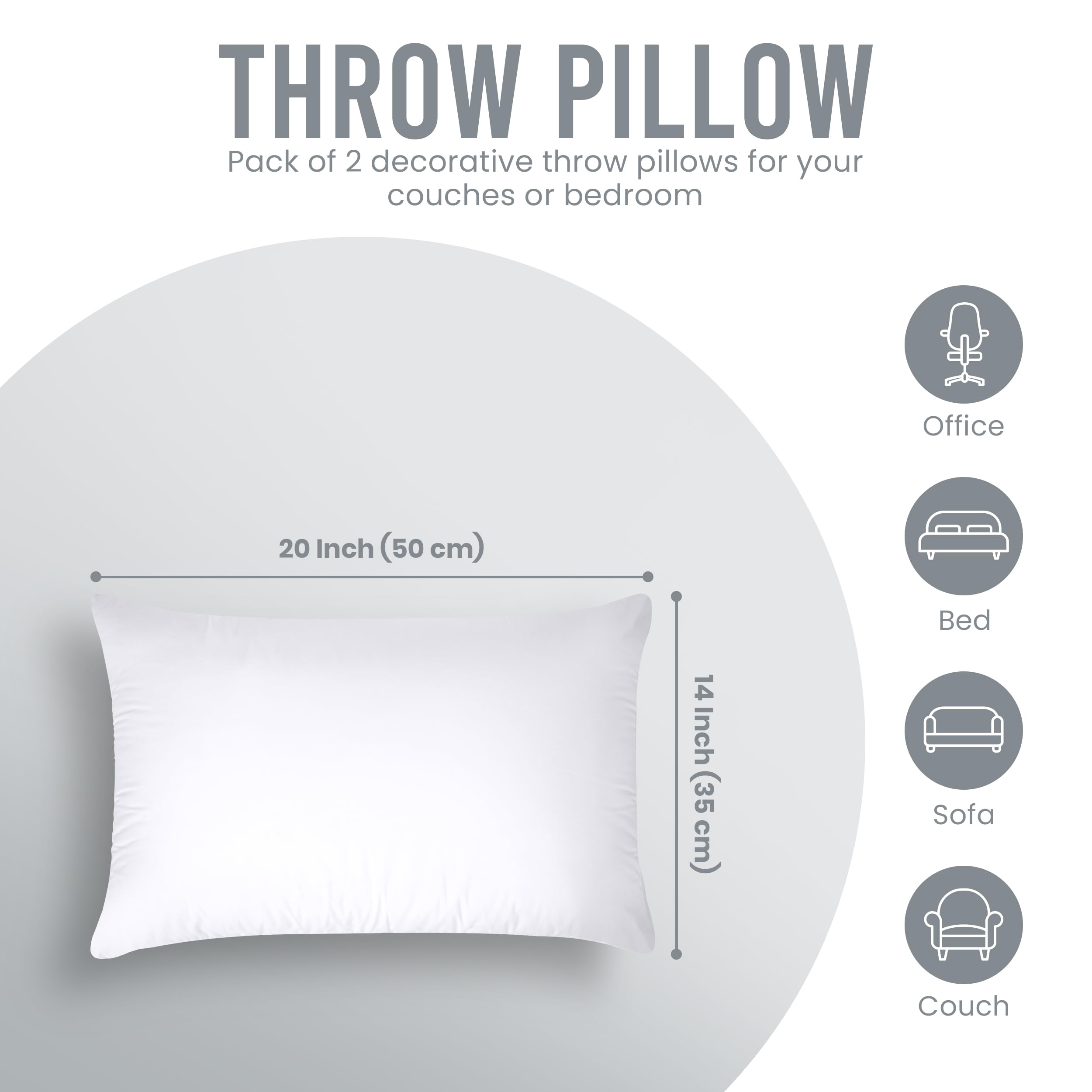 14 x 20 Pillow Inserts (Set of 2) – Offers a standard fit for 14x20 pillow covers and protectors. For a fuller, fluffed-up look, use them with covers one size smaller. Soft, fluffy couch pillows for living room, bedroom, or patio décor.