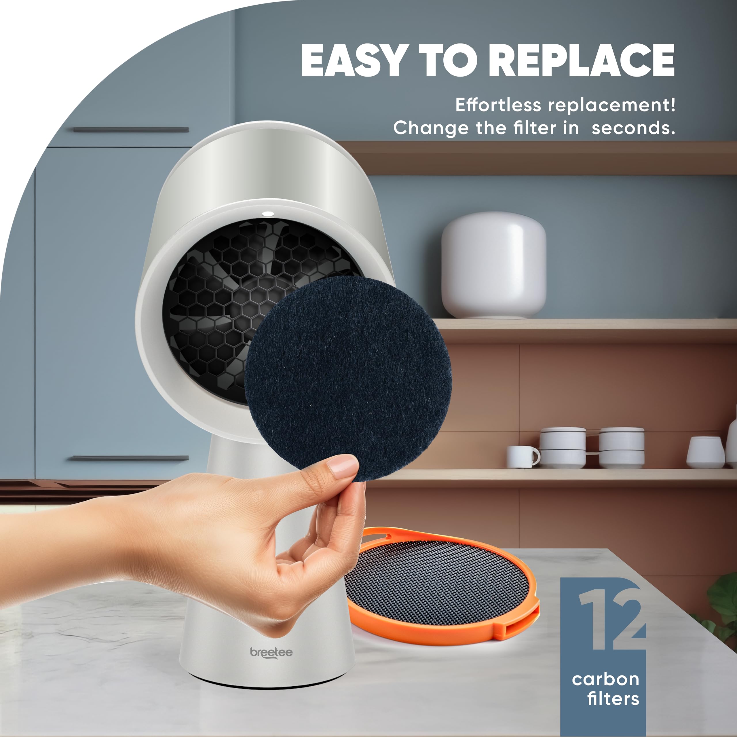 Upgrade your kitchen's air quality with the Breetee Carbon Filters Set. This pack includes six premium carbon filters designed specifically for the Breetee Portable Range Hood, renowned for their ability to efficiently remove odors from the surrounding air. With a universal design, these filters measure 4.7 inches in diameter and 0.08 inches in thickness, ensuring they can also fit products from four major competitors. Unlike typical offerings, our filters stand out with their superior count and impressive presentation. Each filter is individually wrapped in a cellophane duo-pack, ensuring freshness and protection. The entire set comes beautifully packaged in a craft storage box, offering not just functionality but also an aesthetic edge over the competition. Installation is quick and hassle-free, making the replacement process straightforward for anyone. Enhance your kitchen experience with Breetee Carbon Filters Set – because clean air and a clean look go hand in hand! Model Number: BT-PRH-F12 Item Weight: 0.05 Pounds Color: Black