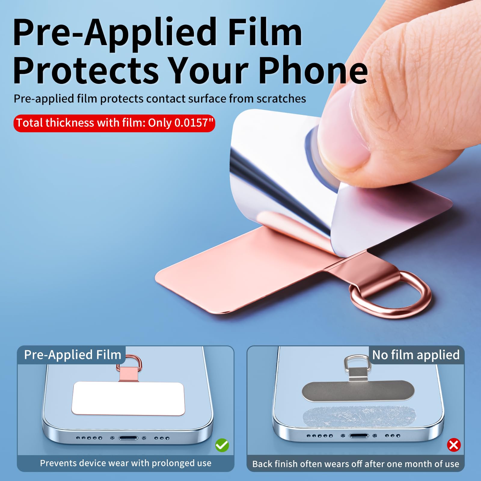 【Premium Steel Construction & Anti-Scratch Phone Case Insert】 Crafted from high-strength steel, this is more than an ordinary patch; it's a robust phone lanyard anchor. A protective film ensures it acts as a safe phone case insert for strap, safeguarding your device from scratches while providing a reliable lanyard connector for phone.