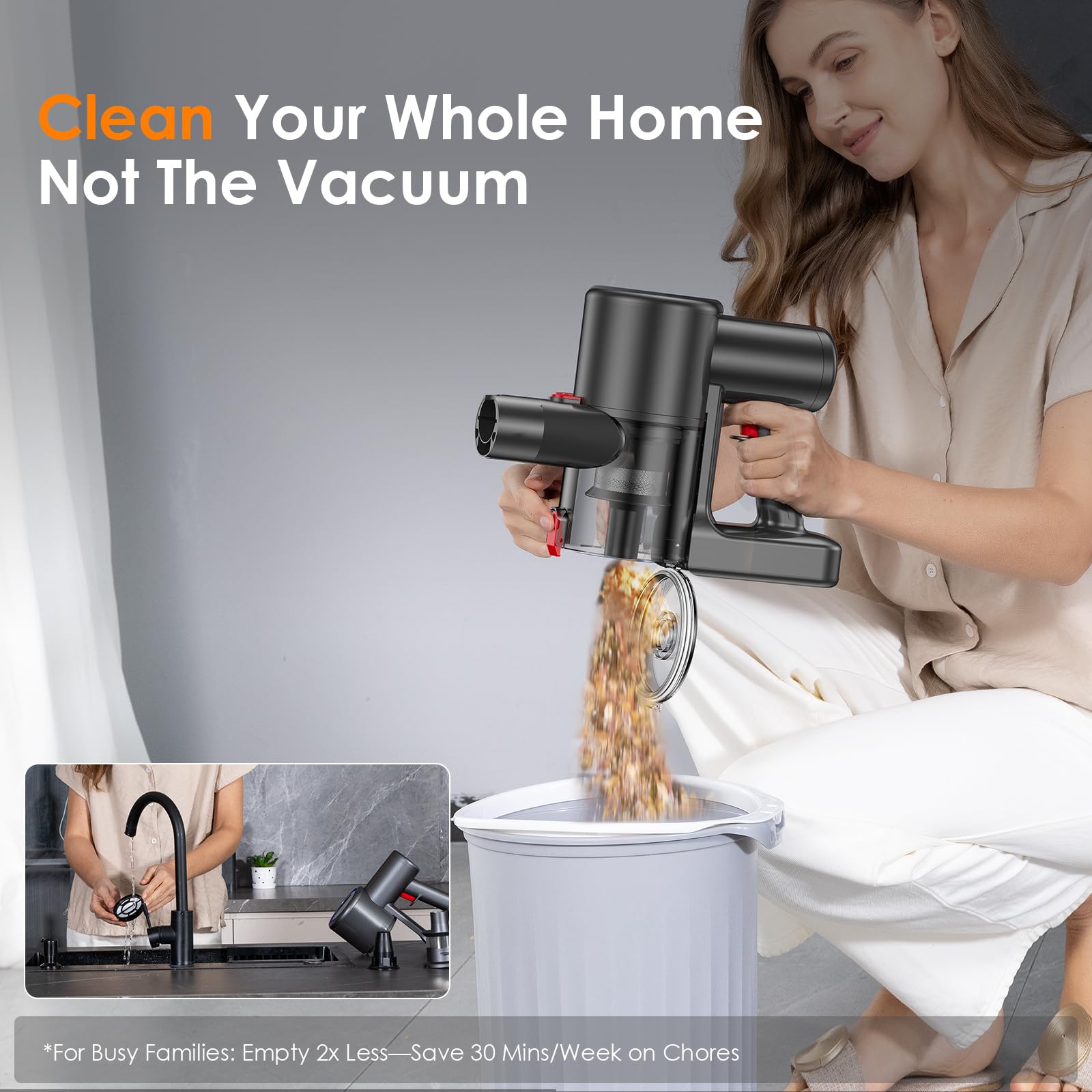 【6-in-1 Versatile System - One Vacuum, Every Cleaning Challenge】 Transform in seconds: Detach the handheld unit for stairs, furniture, or car seats; use the extension wand for ceilings or under beds; attach specialized brushes for any surface. Effortlessly clean hardwood, carpets, sofas, car interiors, dorm rooms, tight kitchen gaps, and even keyboard crumbs – no more switching tools!