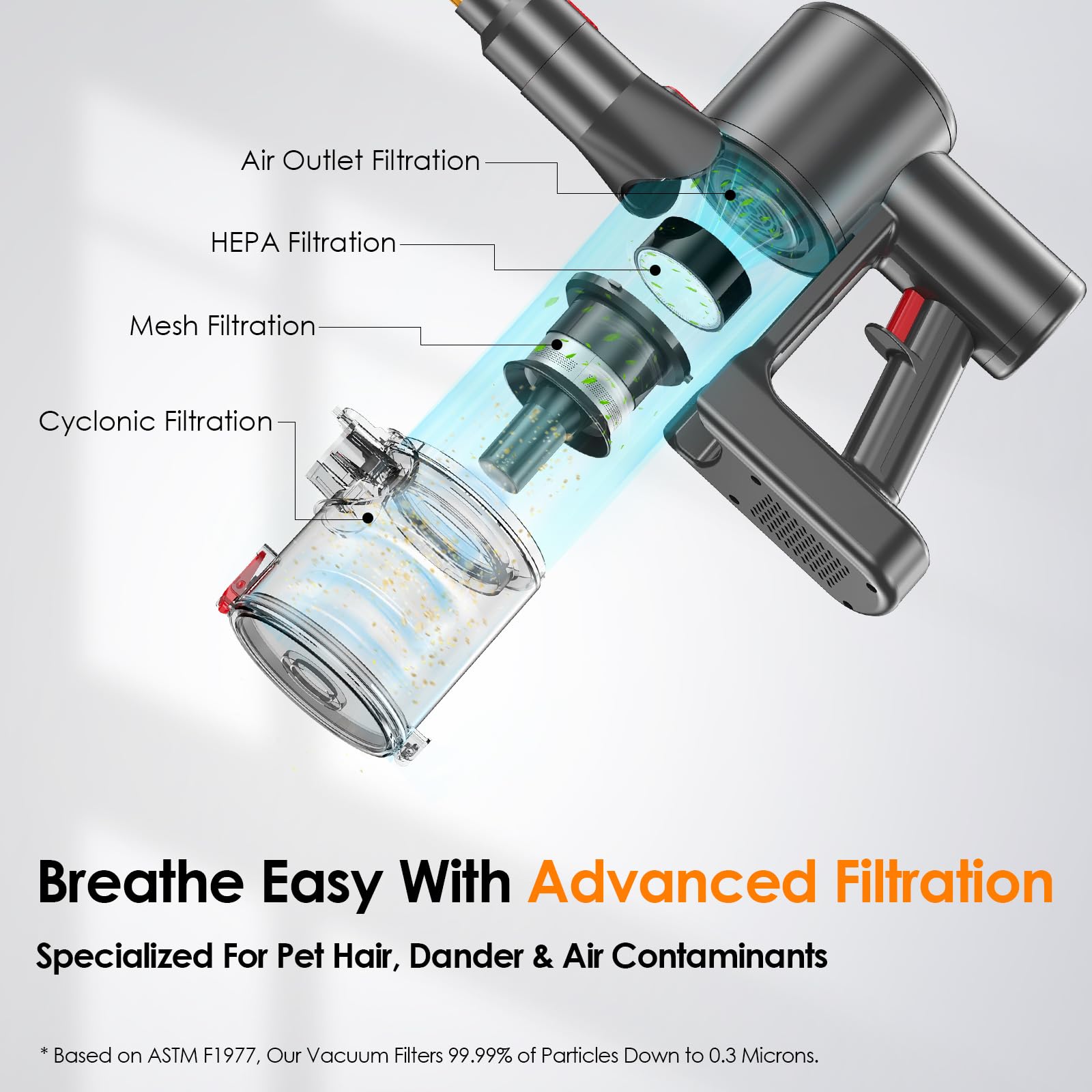 【Advanced HEPA Filtration - Trap 99.99% of Dust】 The HEPA Filtration Cyclone System captures 99.99% of microscopic dust particles, preventing secondary pollution and recirculating clean air. Breathe easier while keeping your home spotless.