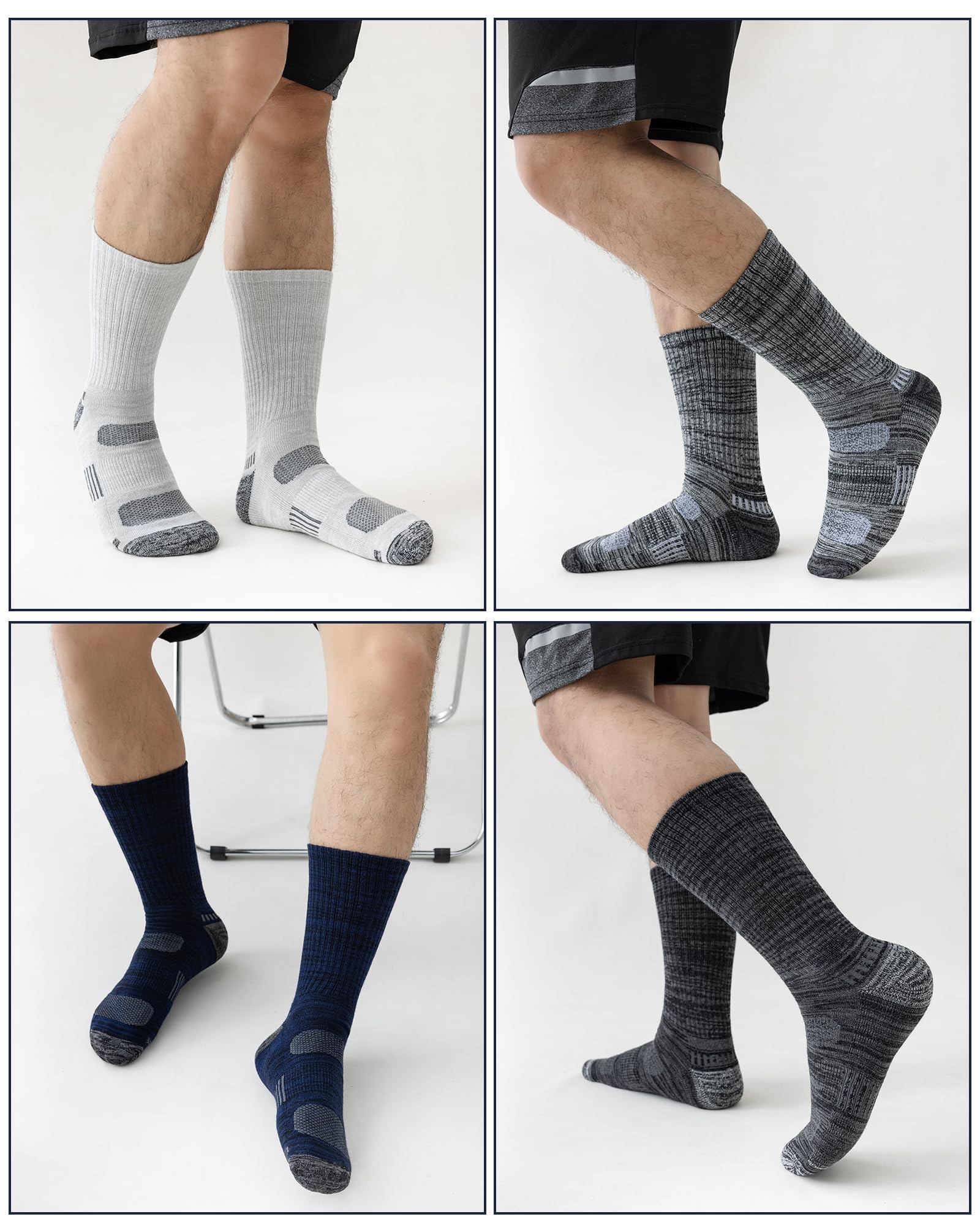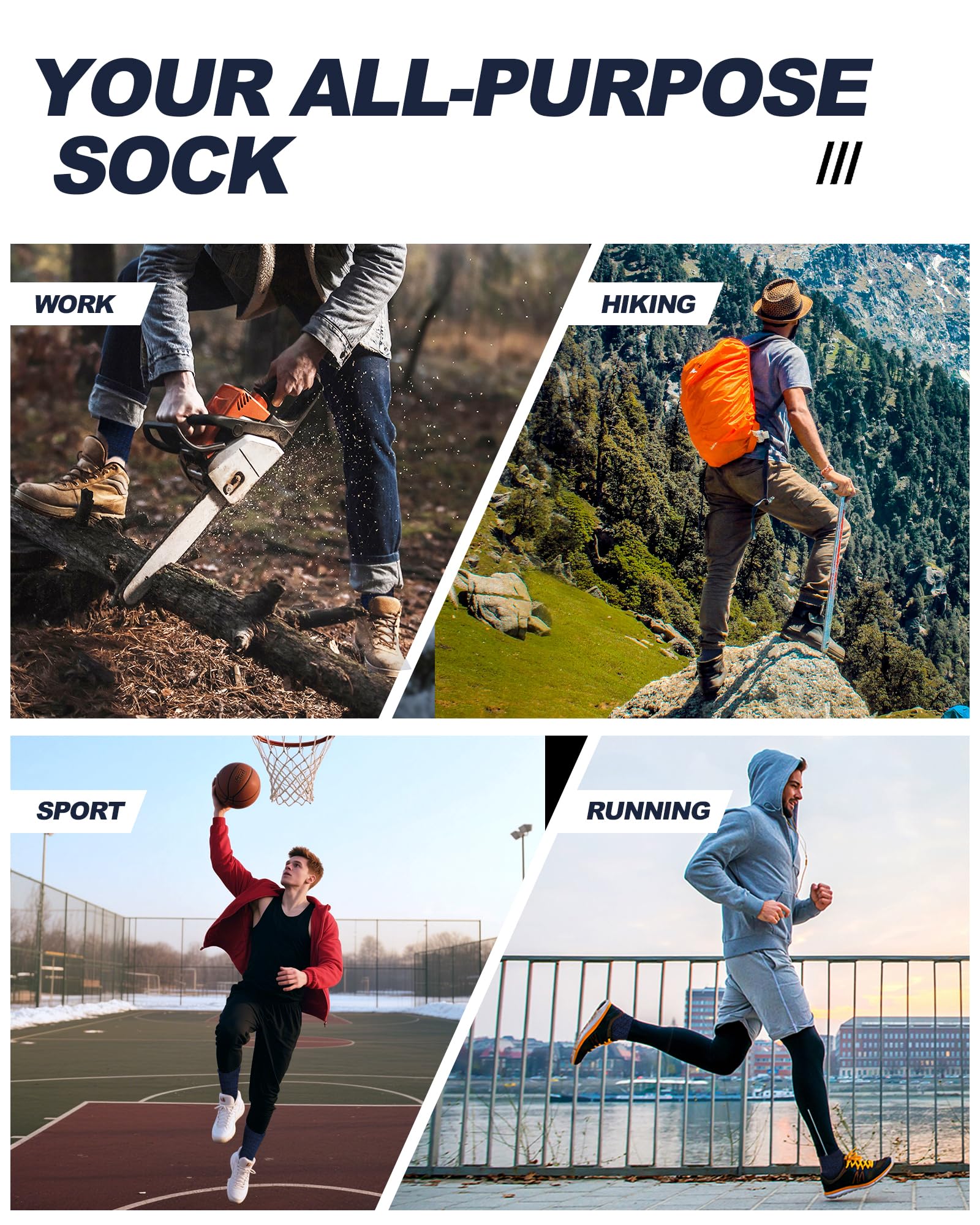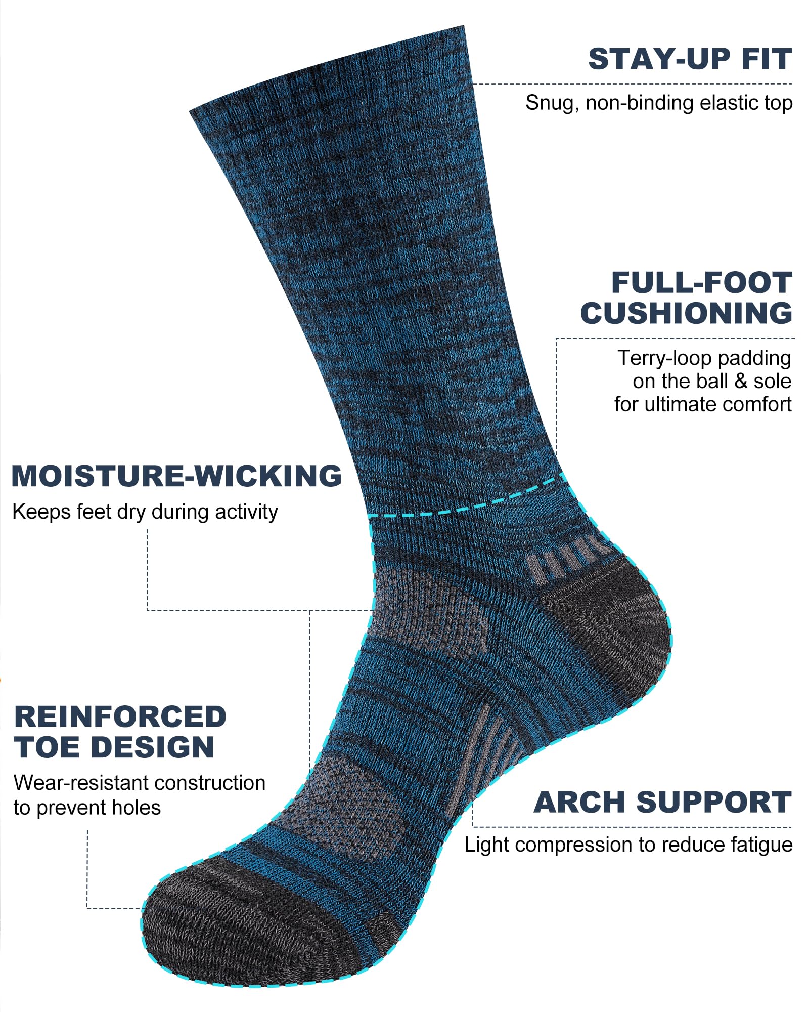 Stay dry and fresh all day : Made with 78.6% premium cotton and advanced moisture-wicking fibers, these mens socks pull sweat away from your skin, reducing odor and keeping feet cool in summer and warm in winter. Ideal for work, hiking, and everyday wear.