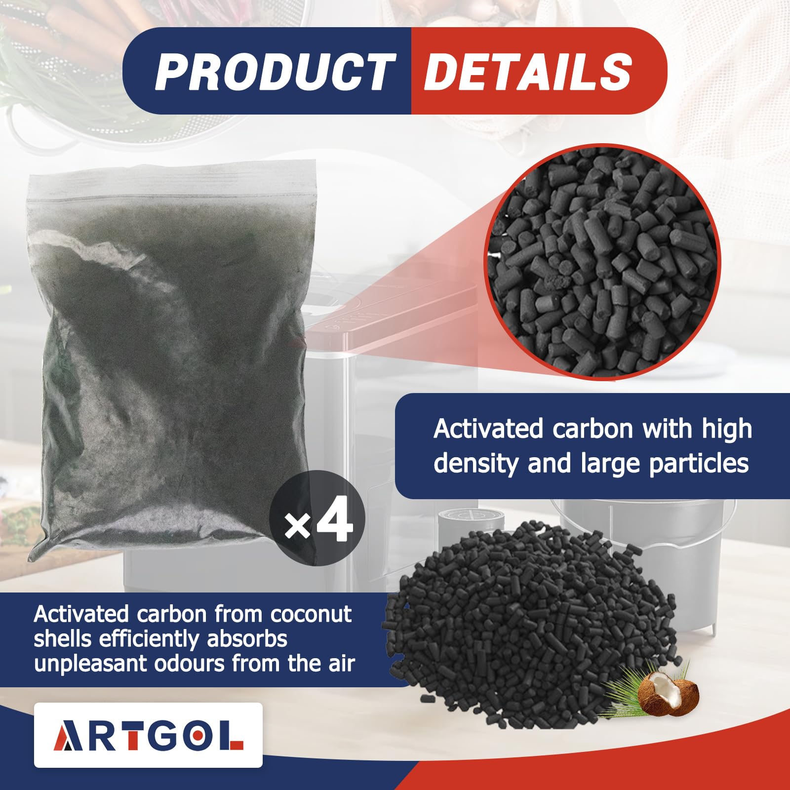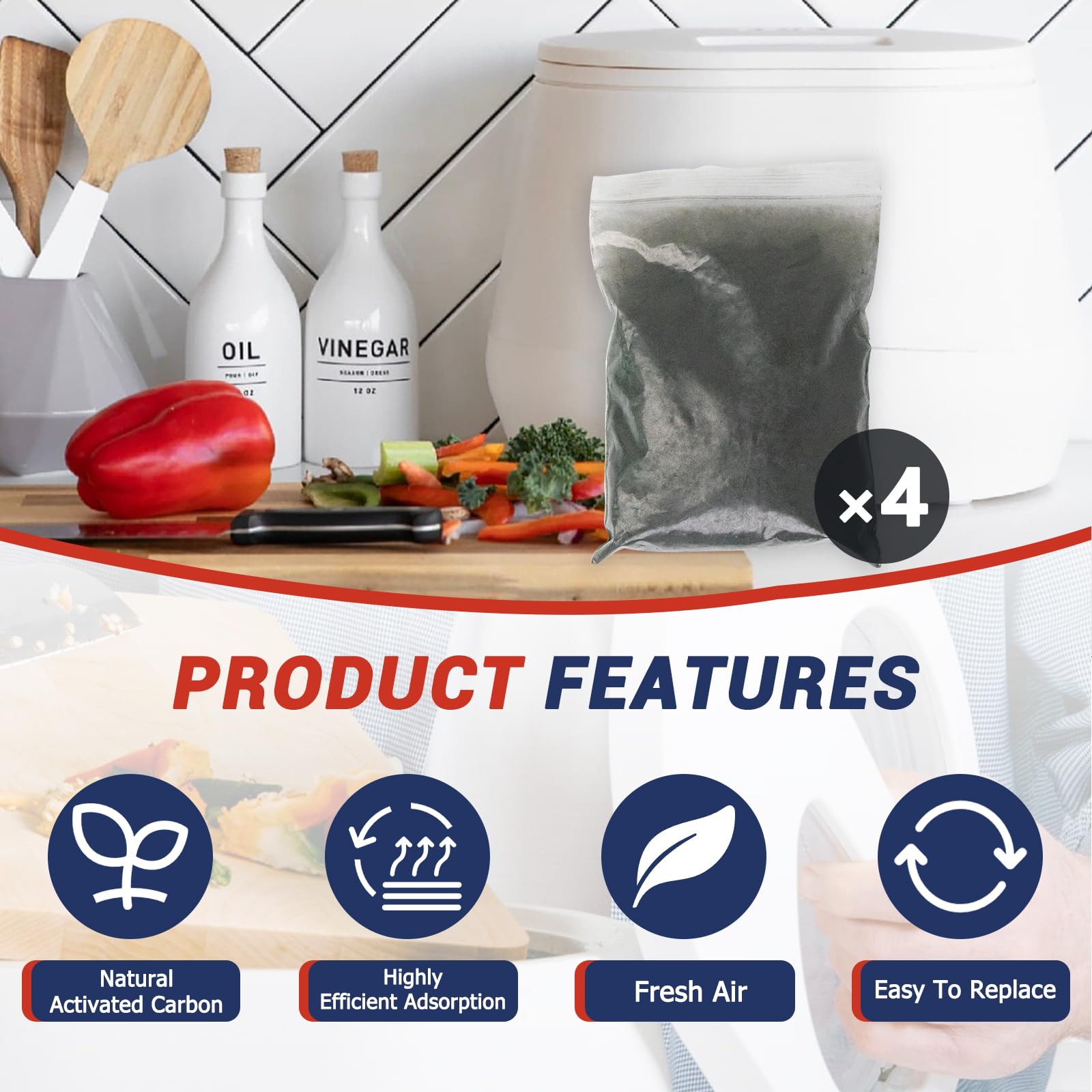 Sufficient quantity: Includes 4 packs of activated charcoal (2lbs), sufficient quantities to ensure fulfilment of the needs of everyday use, our compost charcoal filters replacement offer a sustainable solution for managing kitchen waste.
