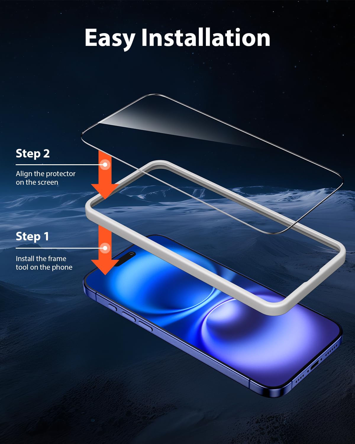【Easy Installation with Alignment frame】Simply align the frame with your phone screen, then put the screen protector on. No bubbles, no dust. Installation can be finished successfully in seconds