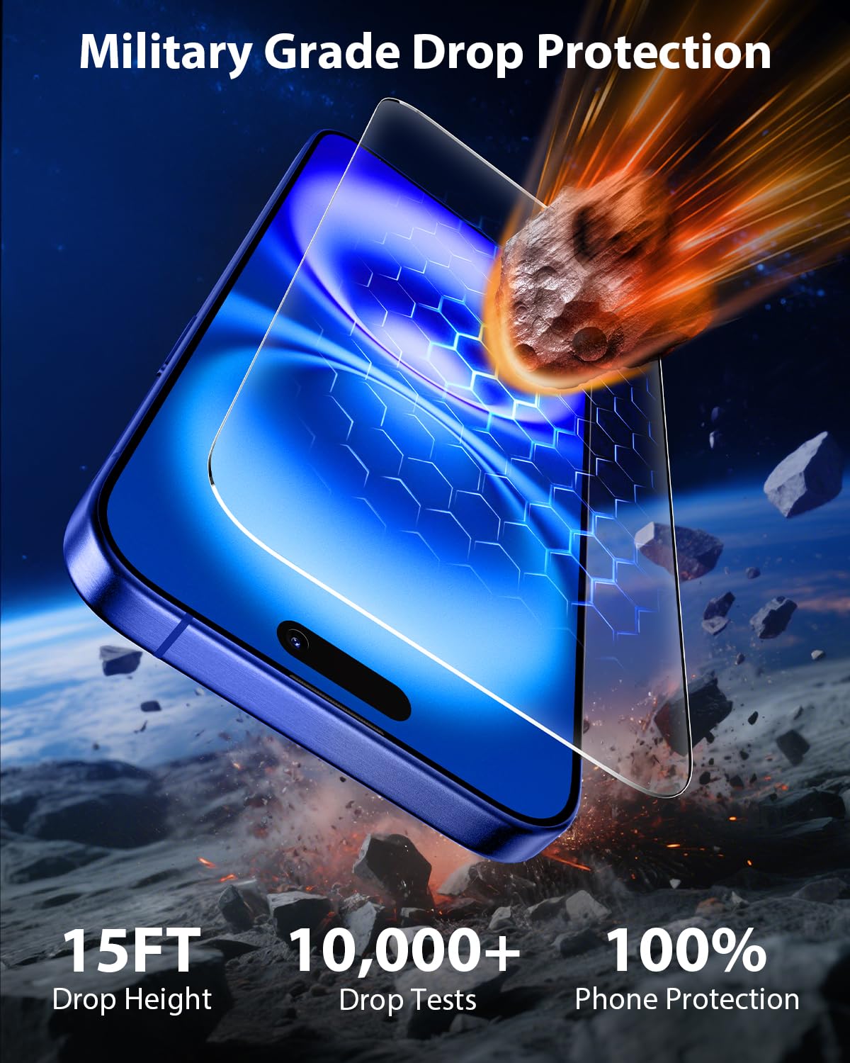 【Military-Grade Drop Protection】100% new precise laser-cut 9H tempered glass. Built to withstand drops and impacts, this tempered glass screen protector offers military-grade protection, ensuring your phone stays safe from everyday use