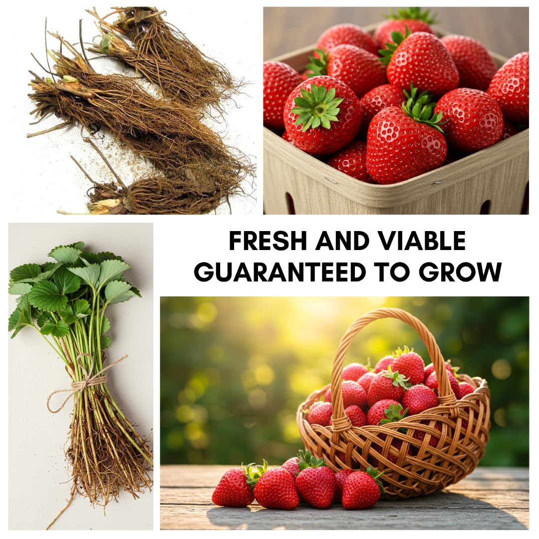 Bare root strawberry plants typically arrive in a dormant state, with their roots exposed and their foliage pruned. Once planted and nurtured, they will quickly establish vibrant, green foliage with distinctive trifoliate leaves. As they mature, delicate white flowers emerge, eventually giving way to the sweet, red berries that are the plant's main attraction.