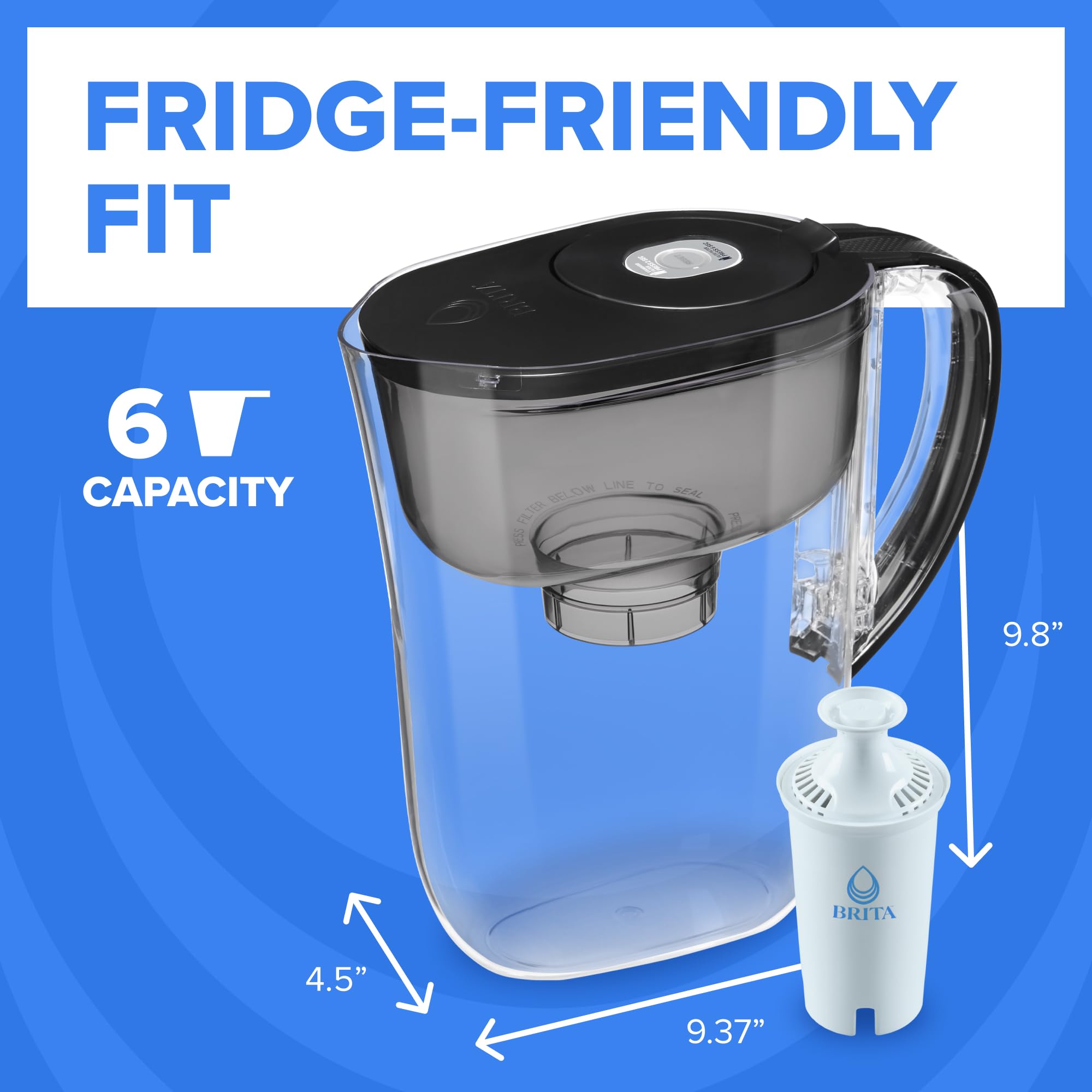 Drink great tasting tap water with this Brita 6 cup water pitcher, made without BPA, and the included BritaPlus Water Filter that traps 2X more contaminants*. This high density replacement filter uses activated carbon to reduce chlorine (taste and odor), copper, cadmium and more**. From the number one brand in water filtration***, this filter replacement lasts 2 months**** and saves $240 a year*****. Ditch single use plastic bottles with this refillable system that replaces up to 300 plastic bottles******. The SmartLight filter indicator is Brita's most accurate filter life indicator. *Vs standard Brita filters. See certifications. **See certifications. Substances reduced may not be in all users’ water. ***Based on IRI sales data. ****Approximate timing based on 40 gallon filter life and average family usage of 11 glasses per day. *****Vs. standard 16.9 fl oz single use bottles. Savings assumes pre purchase of Brita system. ******Standard 16.9 fl oz single-use bottles.