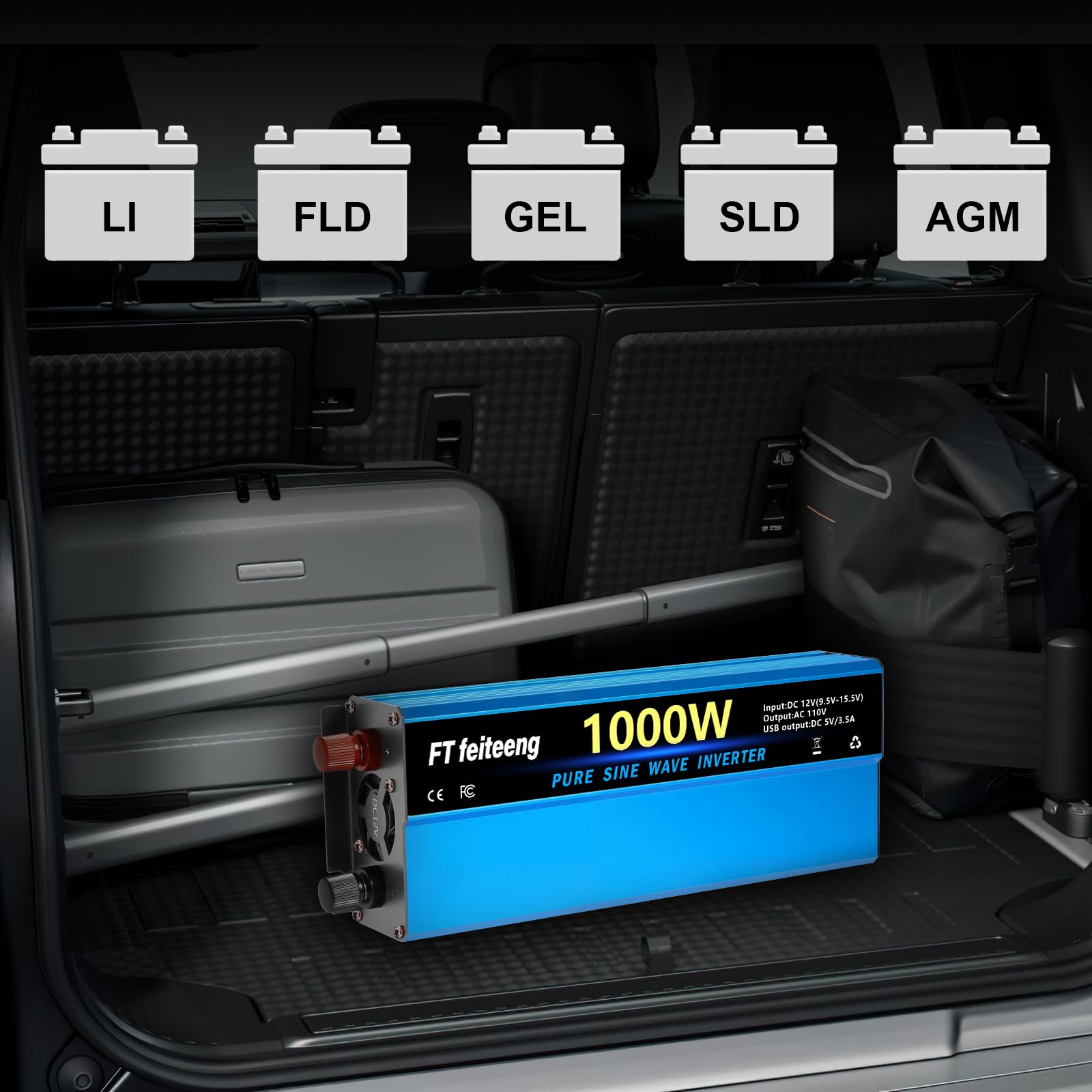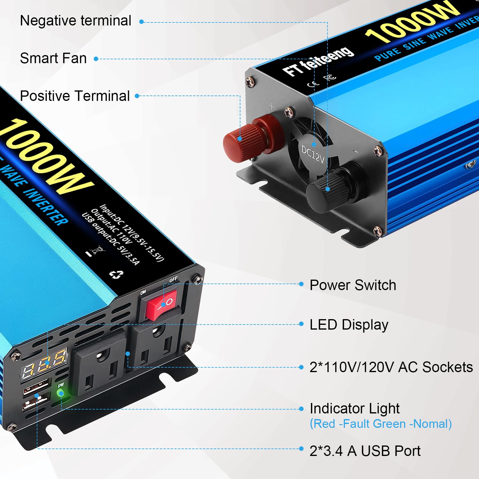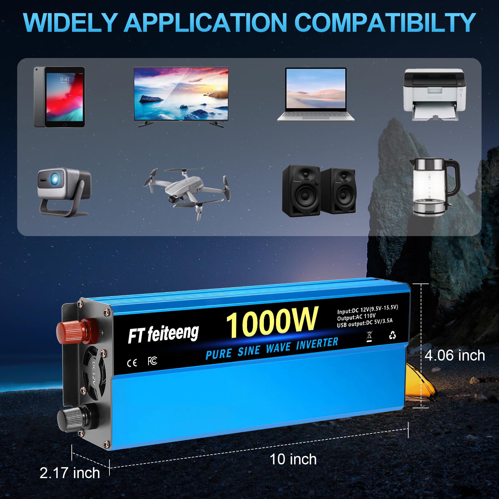 FT FEITEENG 12 VOLT TO 120 VOLT INVERTER: This Inverter Converts 12v Inverter to 110v/120v,It Has US Standard Sockets and 2 USB Charging Interface, Which Can Meet Your Various Power Nee