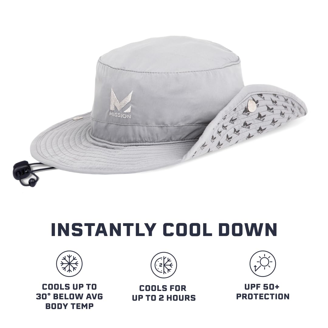 WATER & SWEAT ACTIVATED TECHNOLOGY: This cooling wide-brim hat incorporates advanced Wet-to-Cool Technology, which absorbs water or sweat to cool the hat by up to 30 degrees below average body temperature in under 1 minute. This innovative feature allows the hat to stay cool for up to 2 hours or longer with reactivation. By keeping cool, you can stay focused and dedicated to your activities without distraction. To activate your hat, simply follow these 3 steps: wet, wring, and wave.