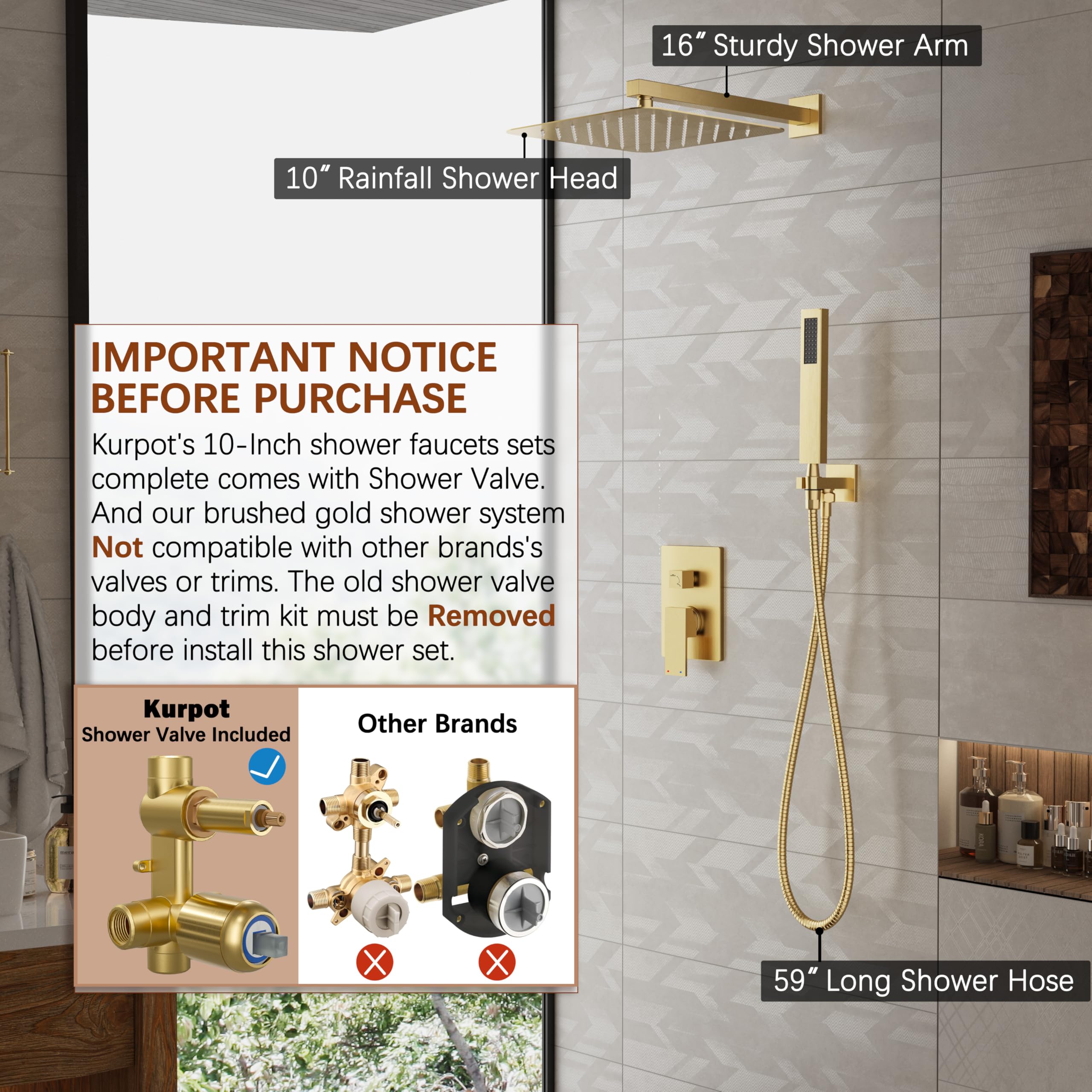 ! ! ! Important Notice: Kurpot brushed gold shower system comes with a detailed installation instructions, using NPT 1/2'' standard U.S. plumbing connections and California CEC listed. NOT compatible with other brands of valves and cartridges. The old valve must be removed before install.