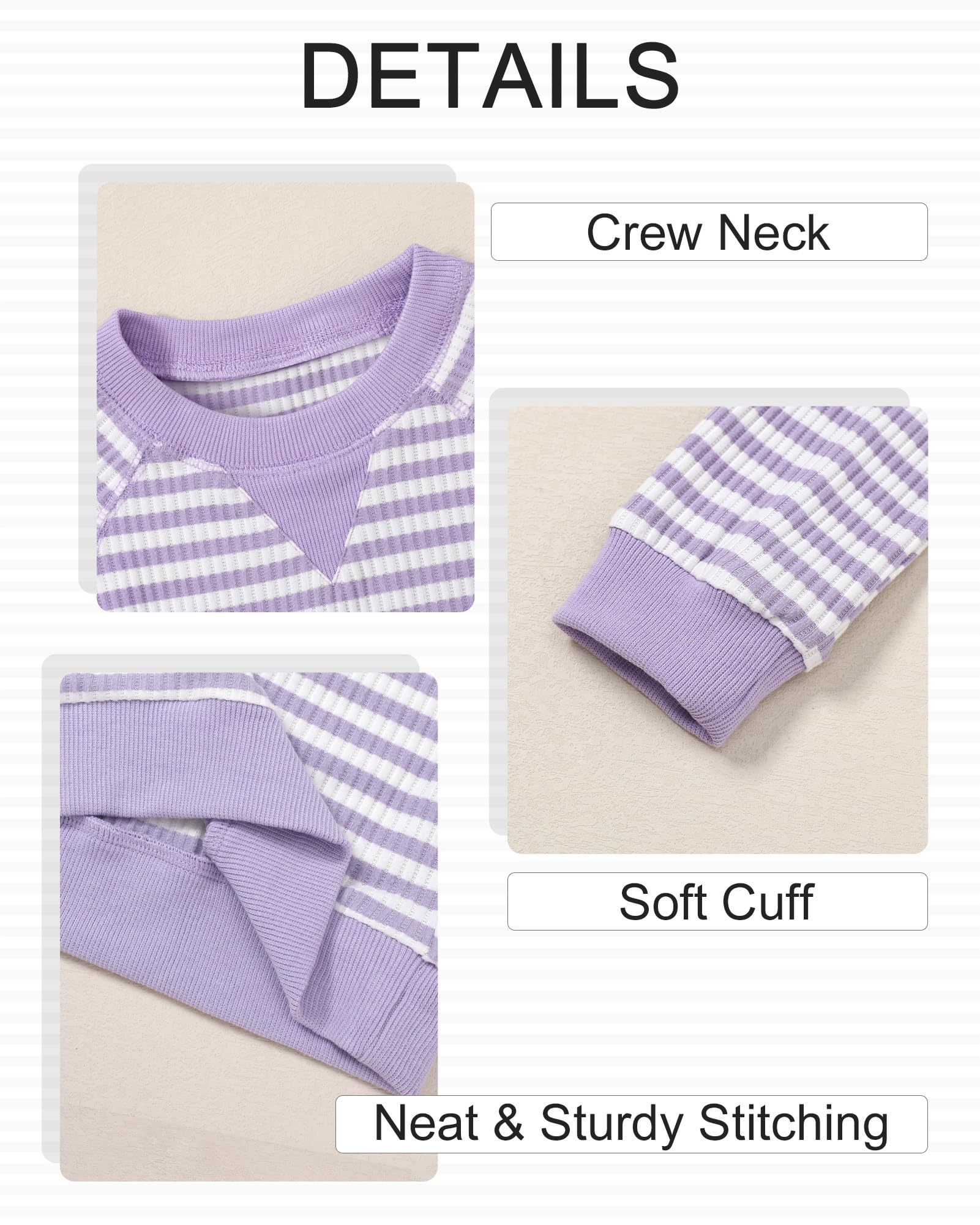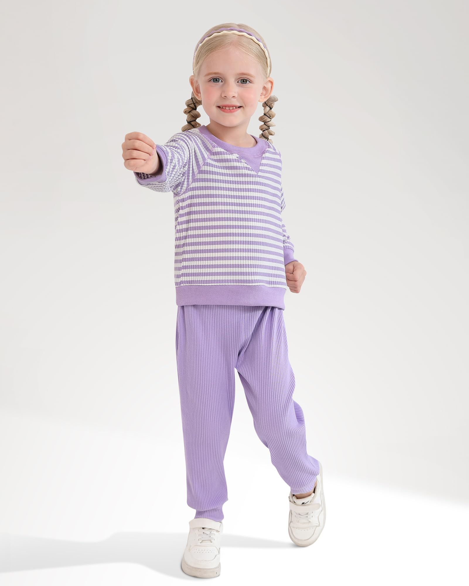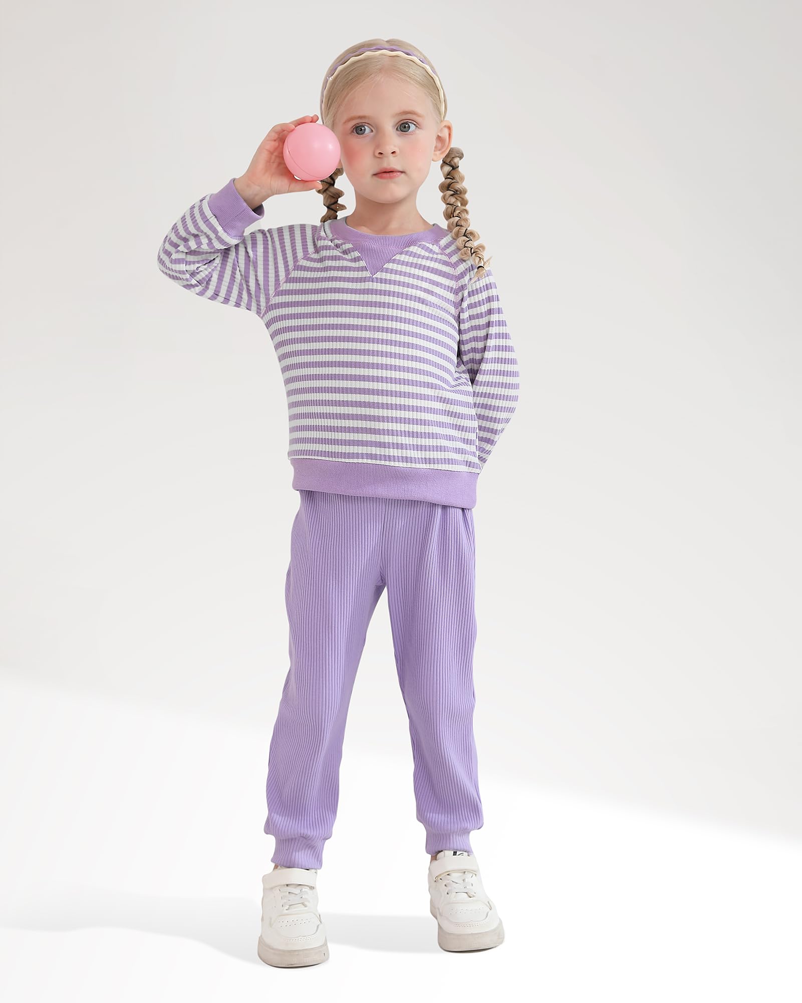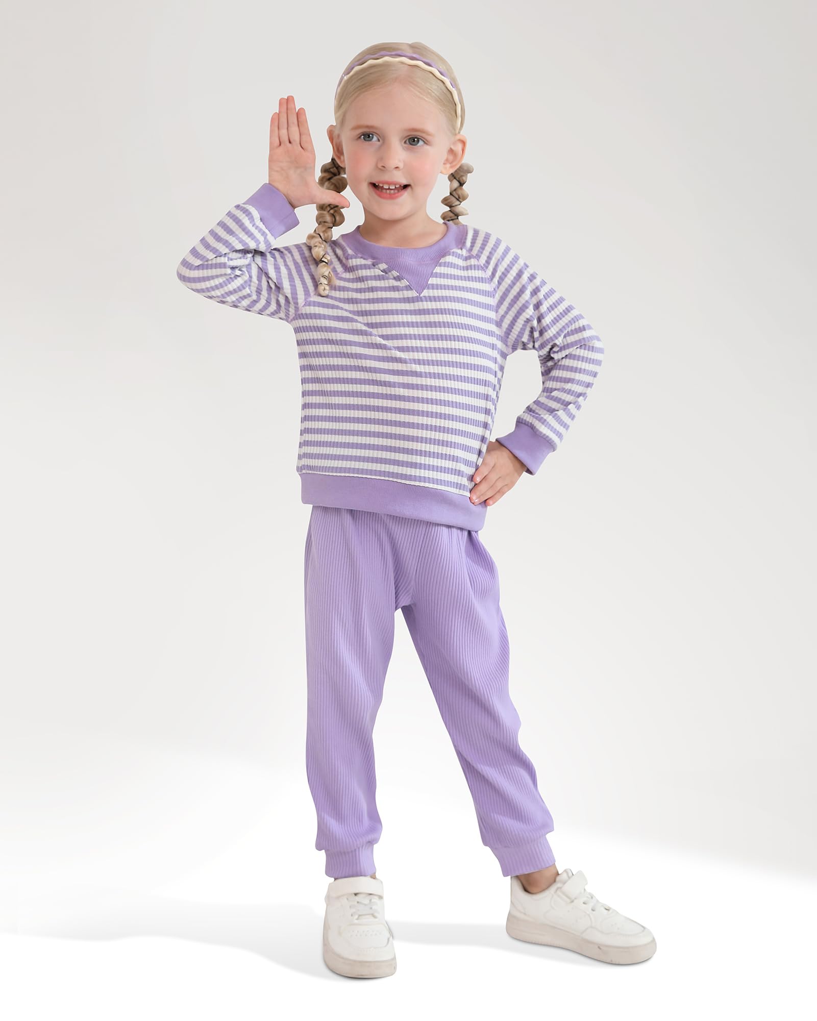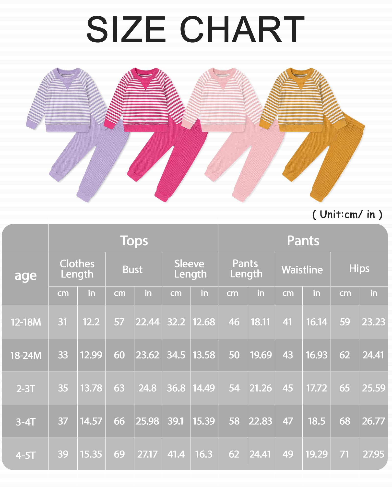 Design: Stylish striped top + solid pants set. Round neck design, easy to put on and take off. Classic autumn/winter colors. Easy to match, create a cute daily look for your little princess