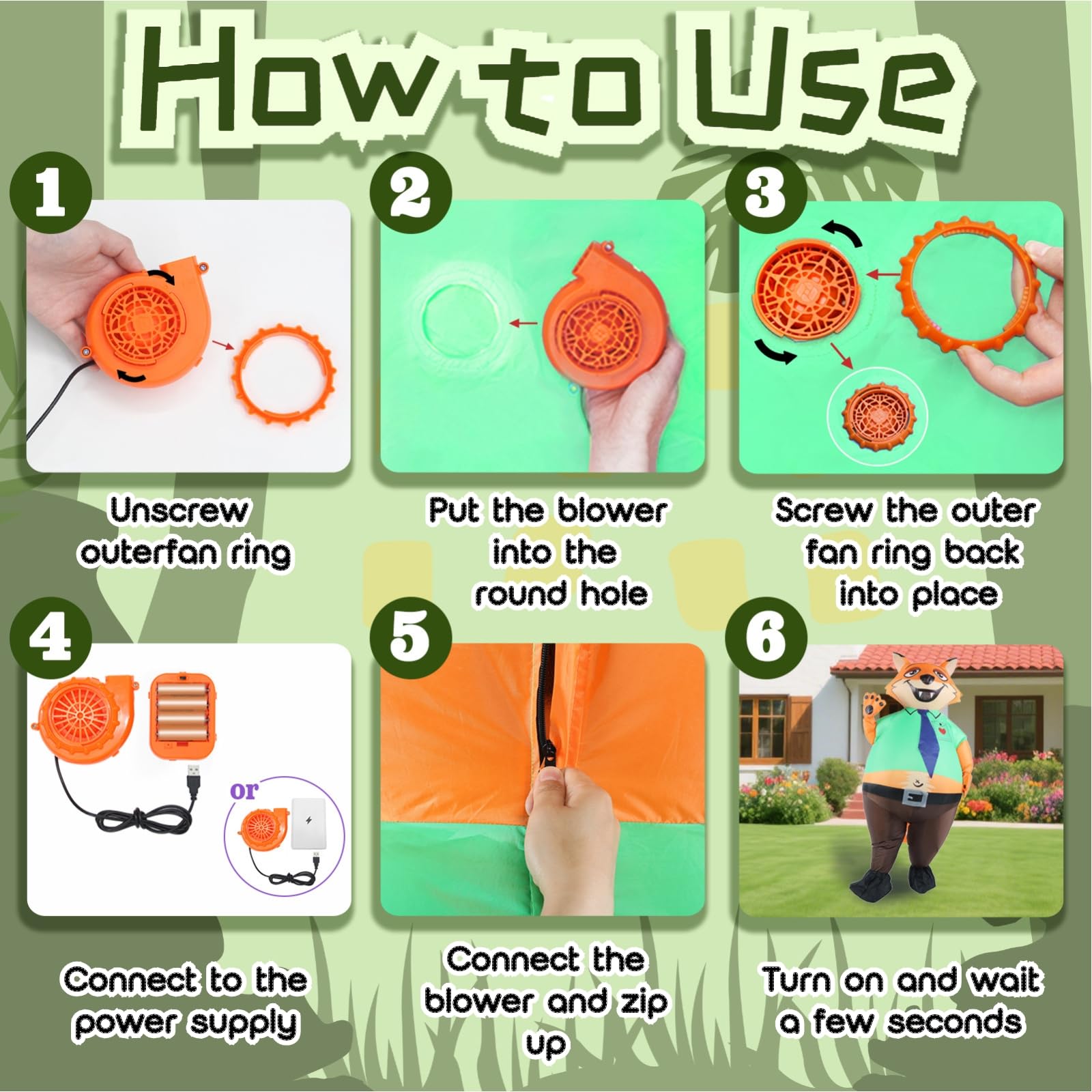 Easy & Fast Inflation: This inflatable fox costume features a high-quality fan that fully inflates the outfit in just minutes, bringing your clever fox character to life in no time! The powerful fan creates a full, rounded shape that looks playful and attention-grabbing from every angle. When the fun is over, simply deflate with easeβno hassle, no fuss. It folds down quickly for compact storage, making cleanup a breeze and getting ready for your next event quicker than ever