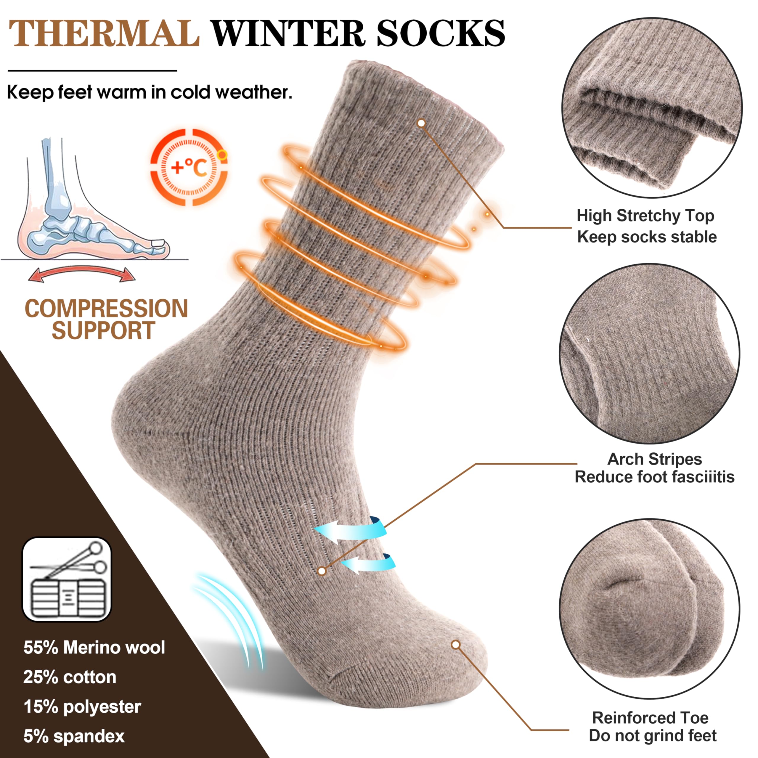 WARM & COZY : The materials of this stylish womens winter wool socks is very soft and comfortable, fuzzy inner design will keep your feet warm, the breathable and soft fabric will also keep your feet comfortable all the day.