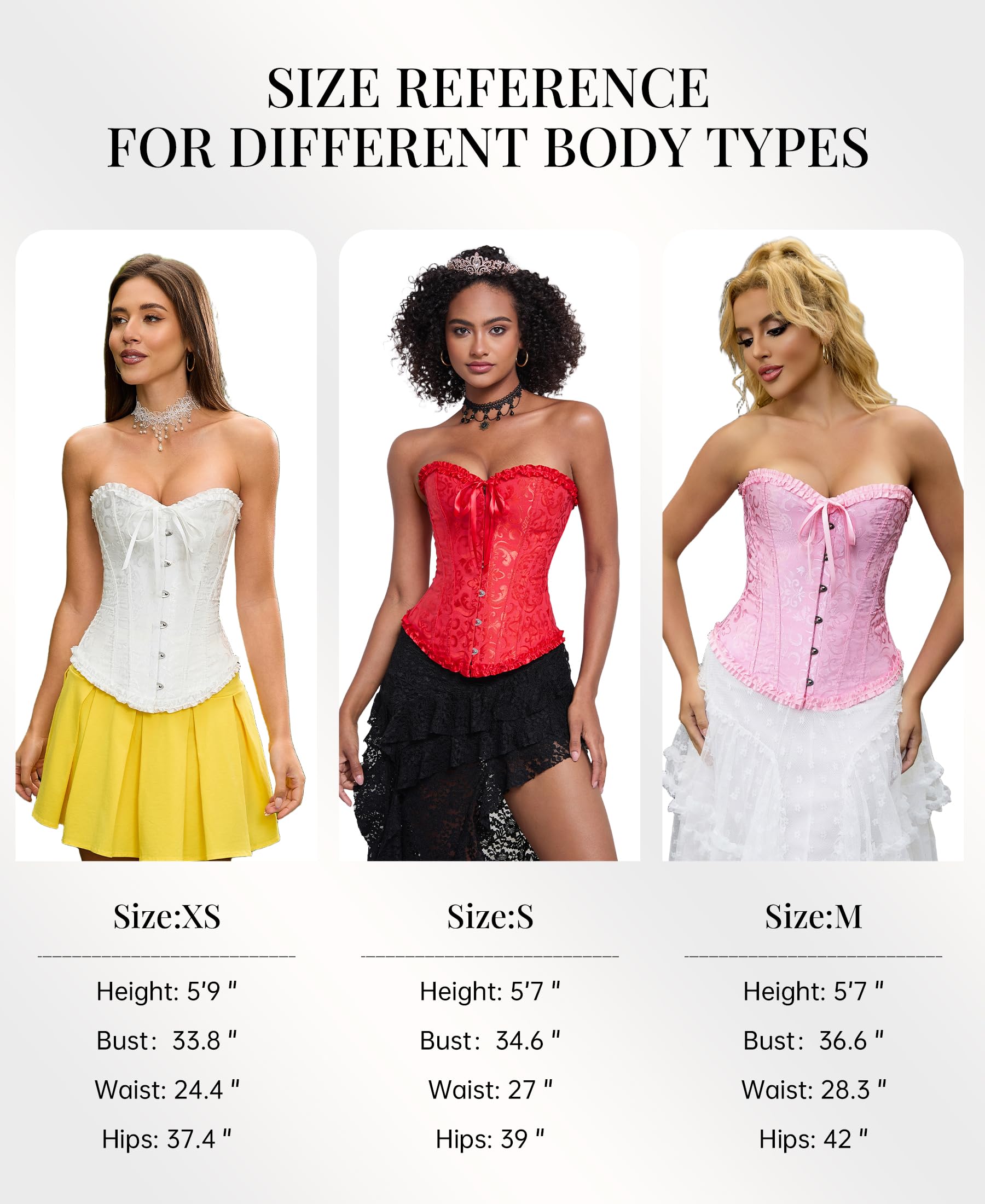 Note: Corset sizing differs from regular clothing. For the best fit, please measure your waist and bust before purchasing. The back lacing allows for size adjustment - take your time when putting it on.