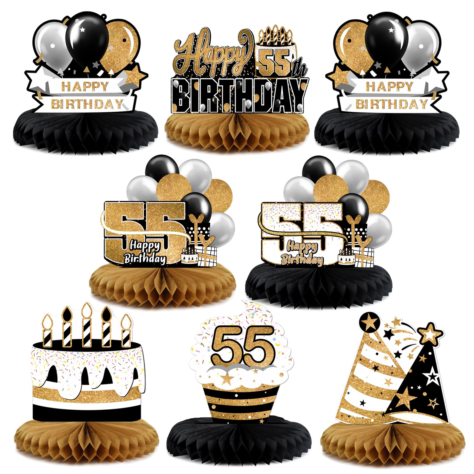 [WHAT YOU GET] Comes with 8pcs "55th Birthday" Gold cake star balloon table honeycomb ,made of thick paper and great details sign.Take pictures will very pretty !