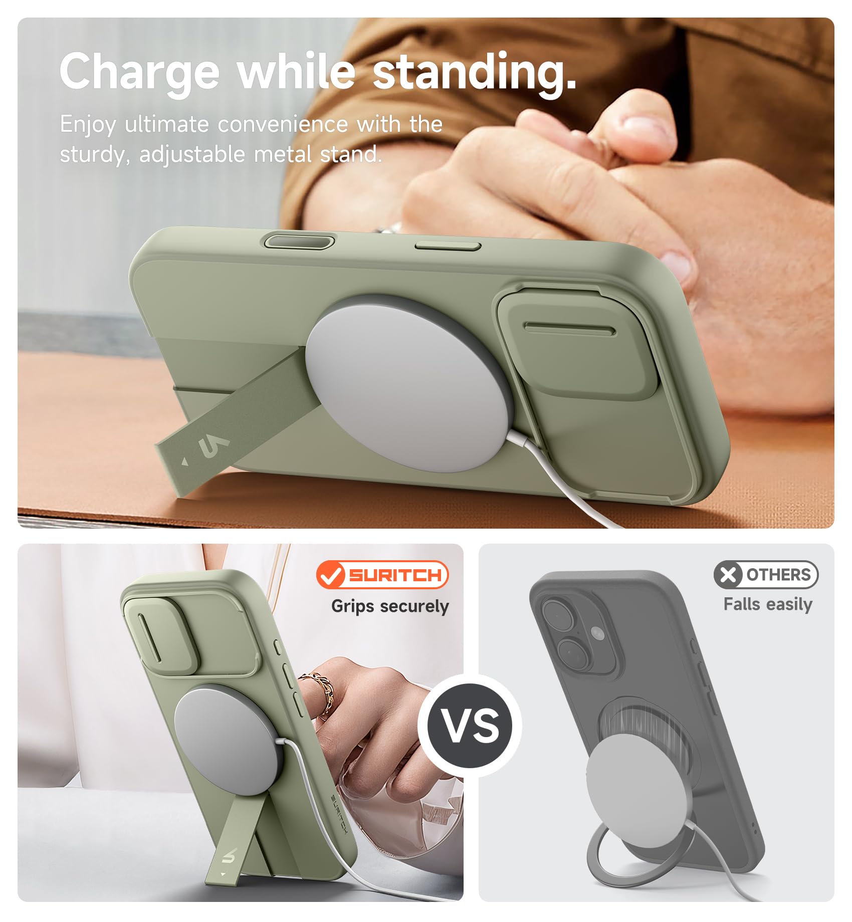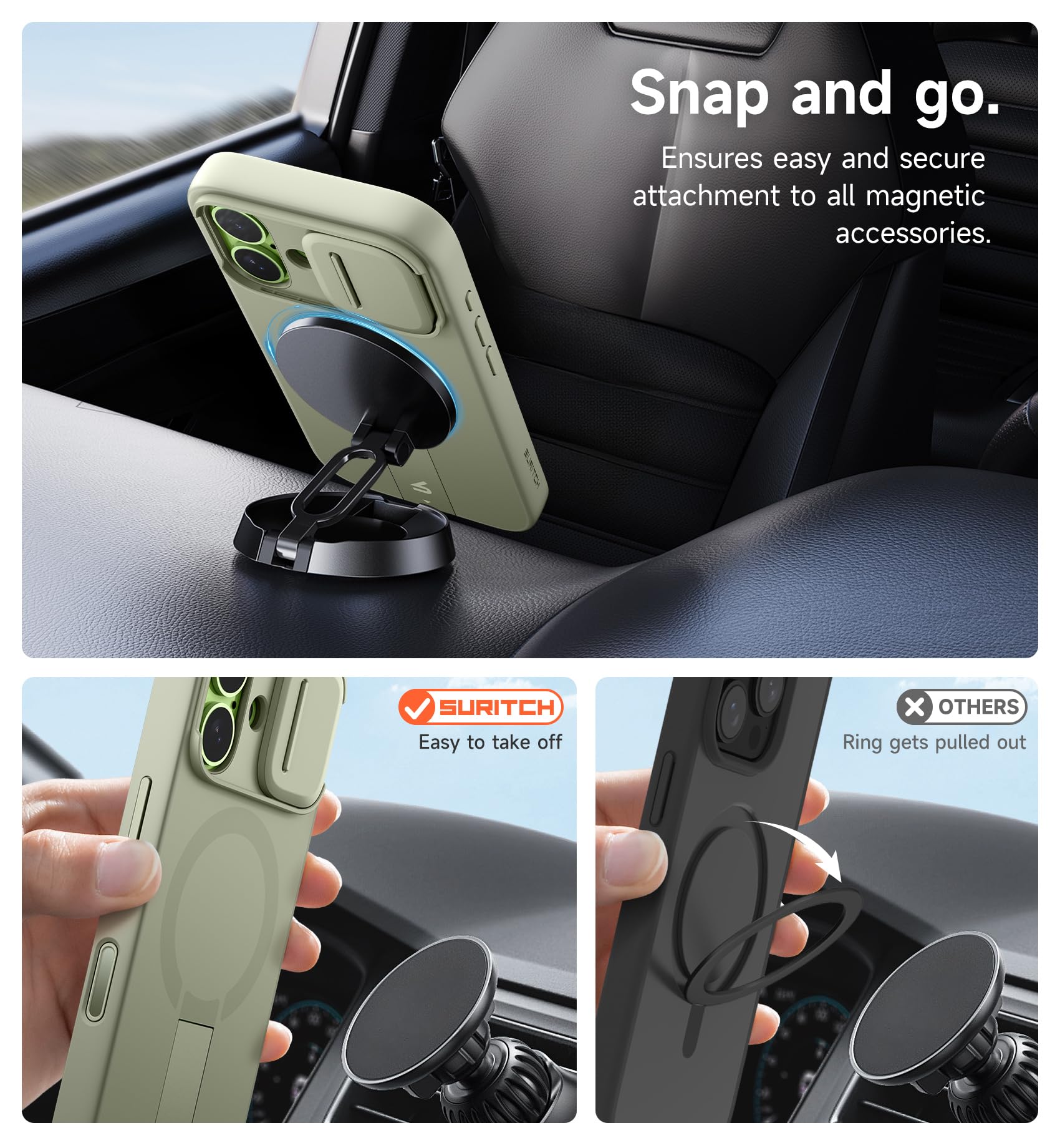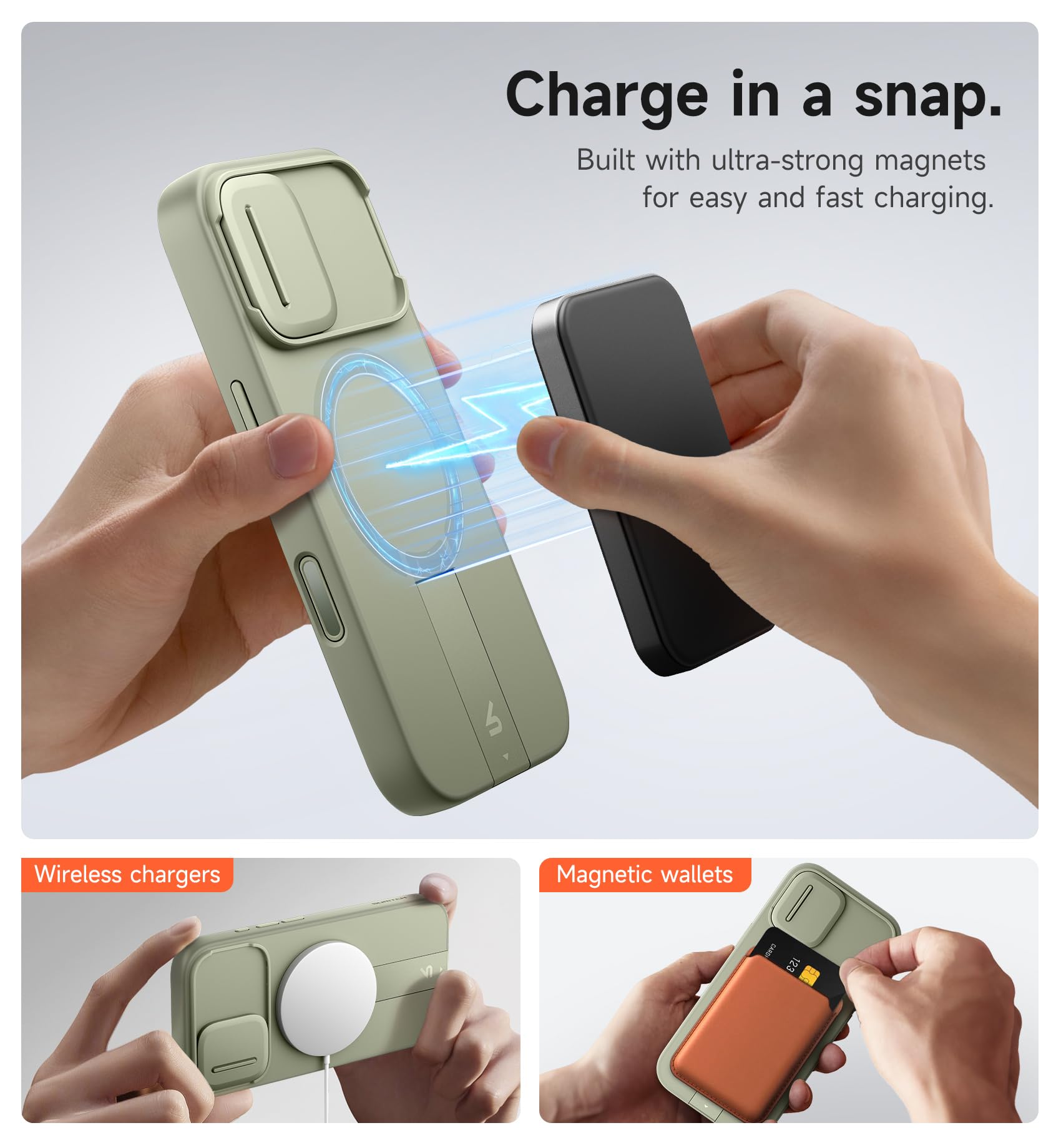 【Secure magnetic attachment】: The case features powerful magnetism (13.28N) for seamless MagSafe compatibility; Whether you're dropping it on a charger or snapping it onto your car mount, the connection is instant and secure