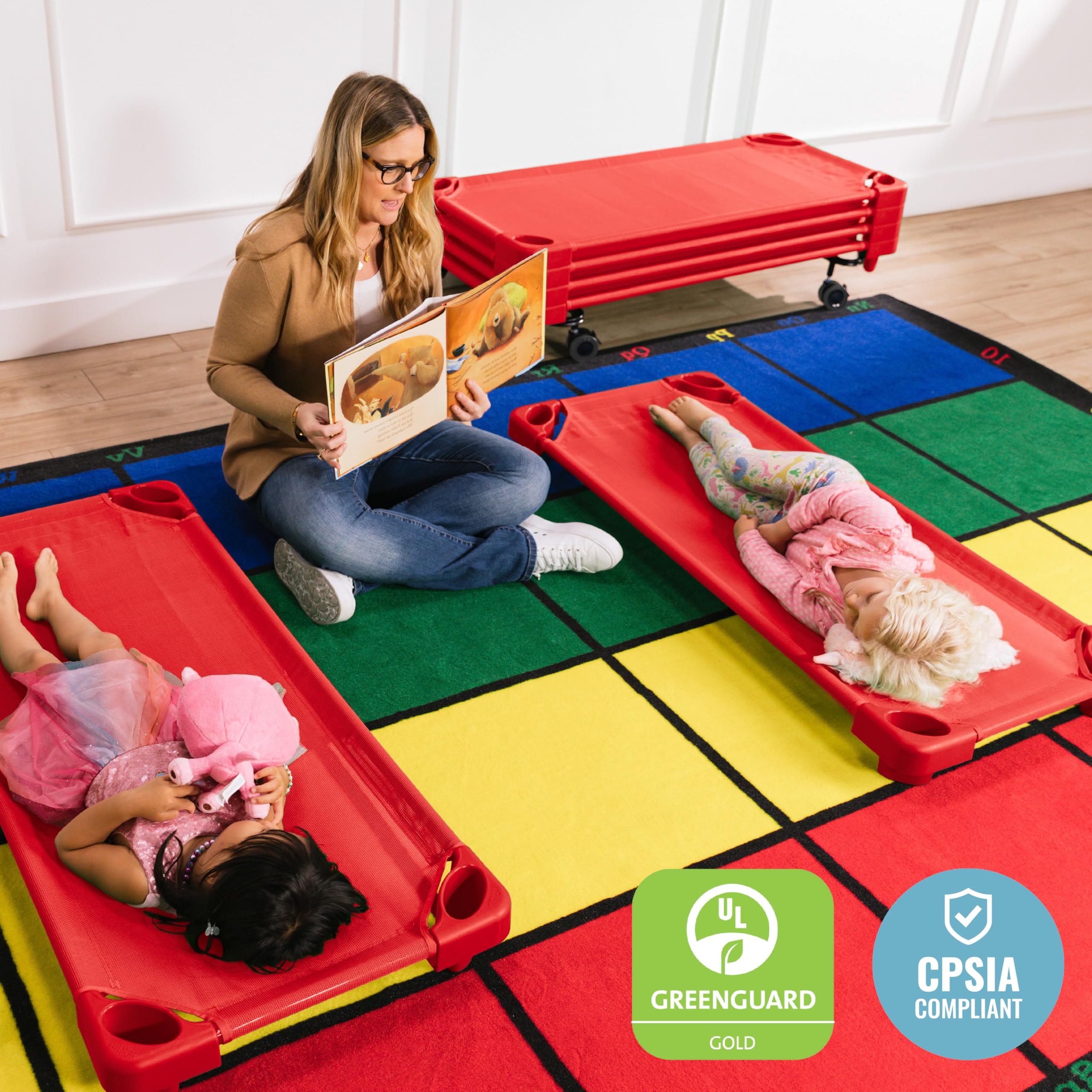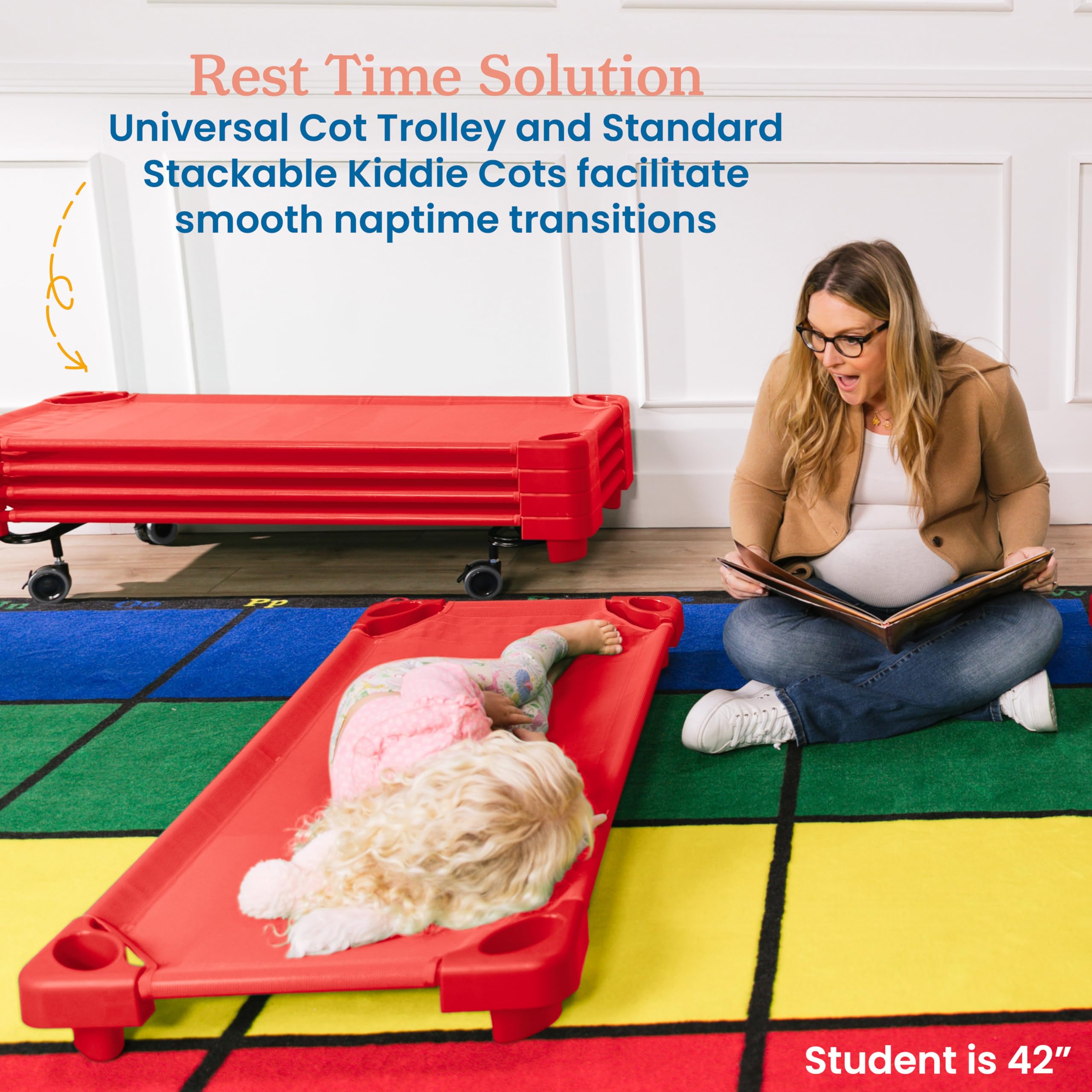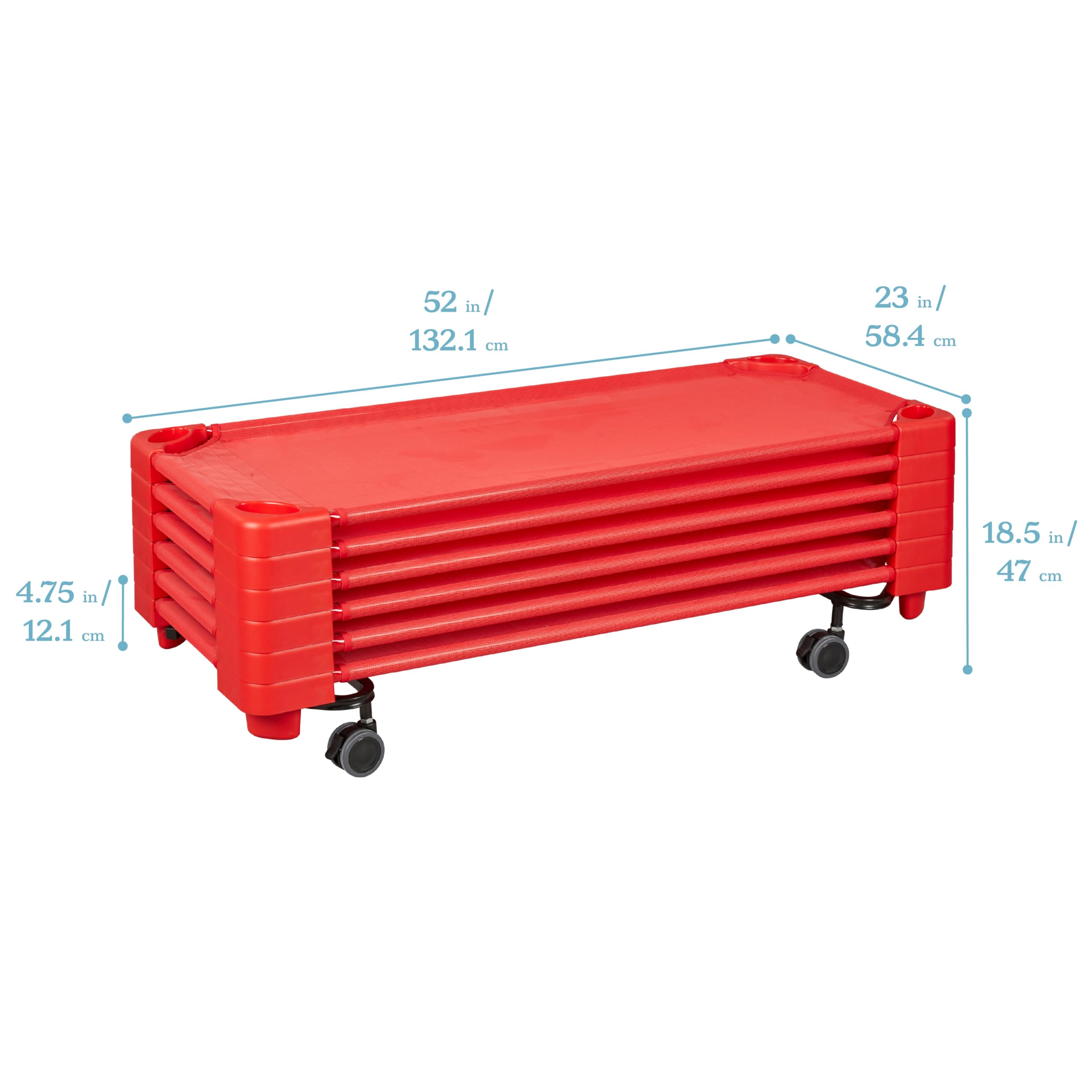ECR4Kids Stackable Kiddie Cots with Trolley, RTA, Standard, Daycare Essentials, Red, 6-Pack