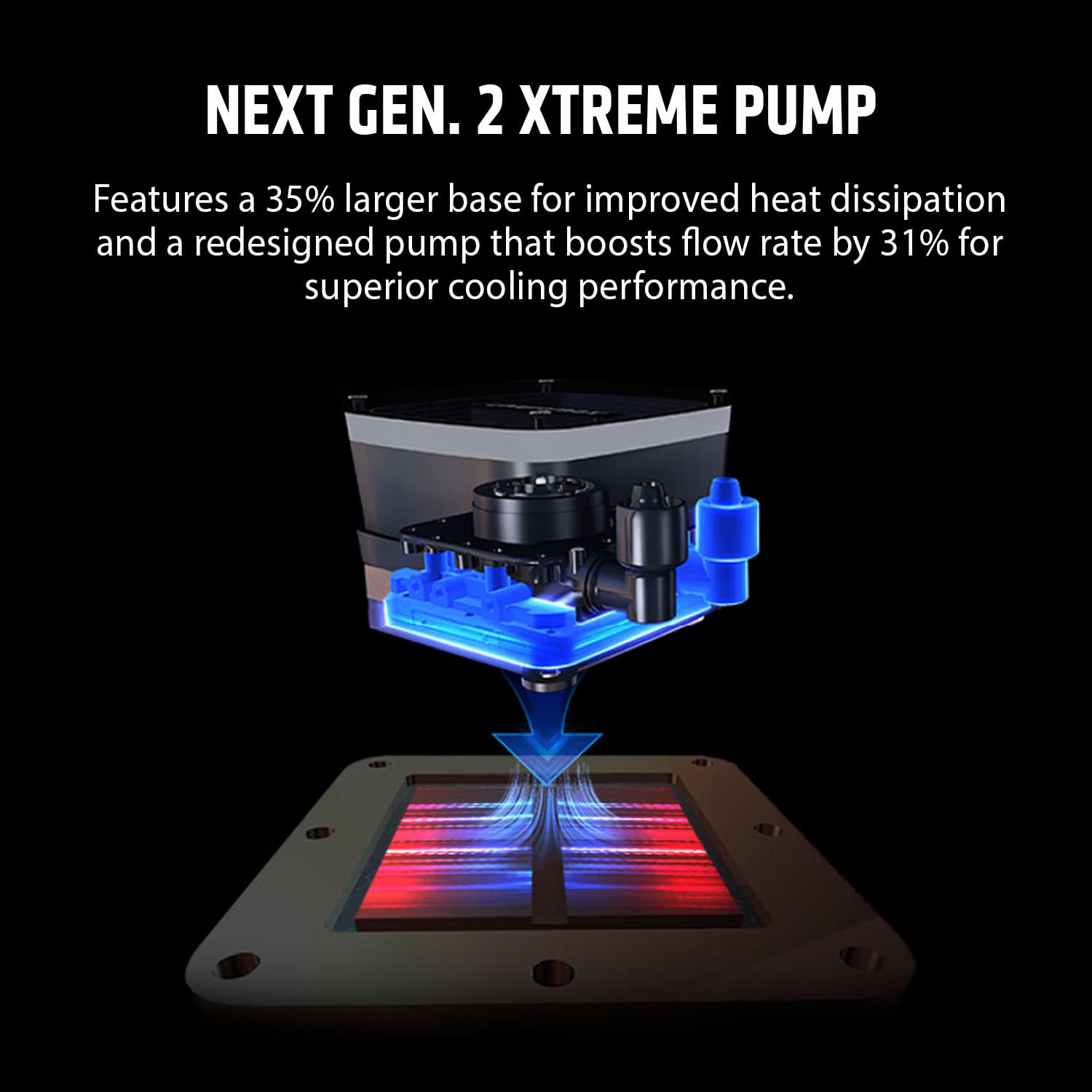 Gen.2 Xtreme Pump Design: Enlarged cooling base and improved pump lift for superior cooling capacity.