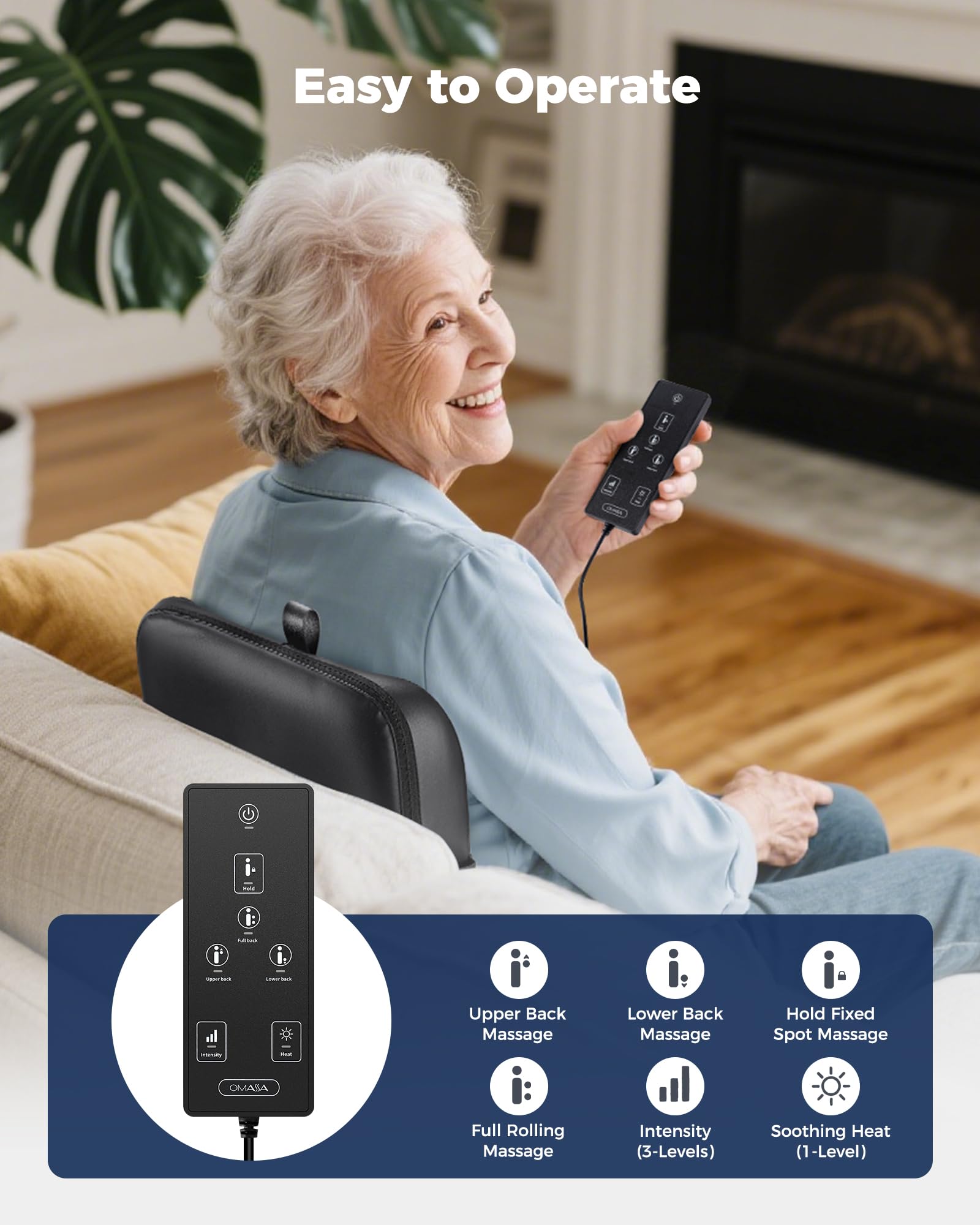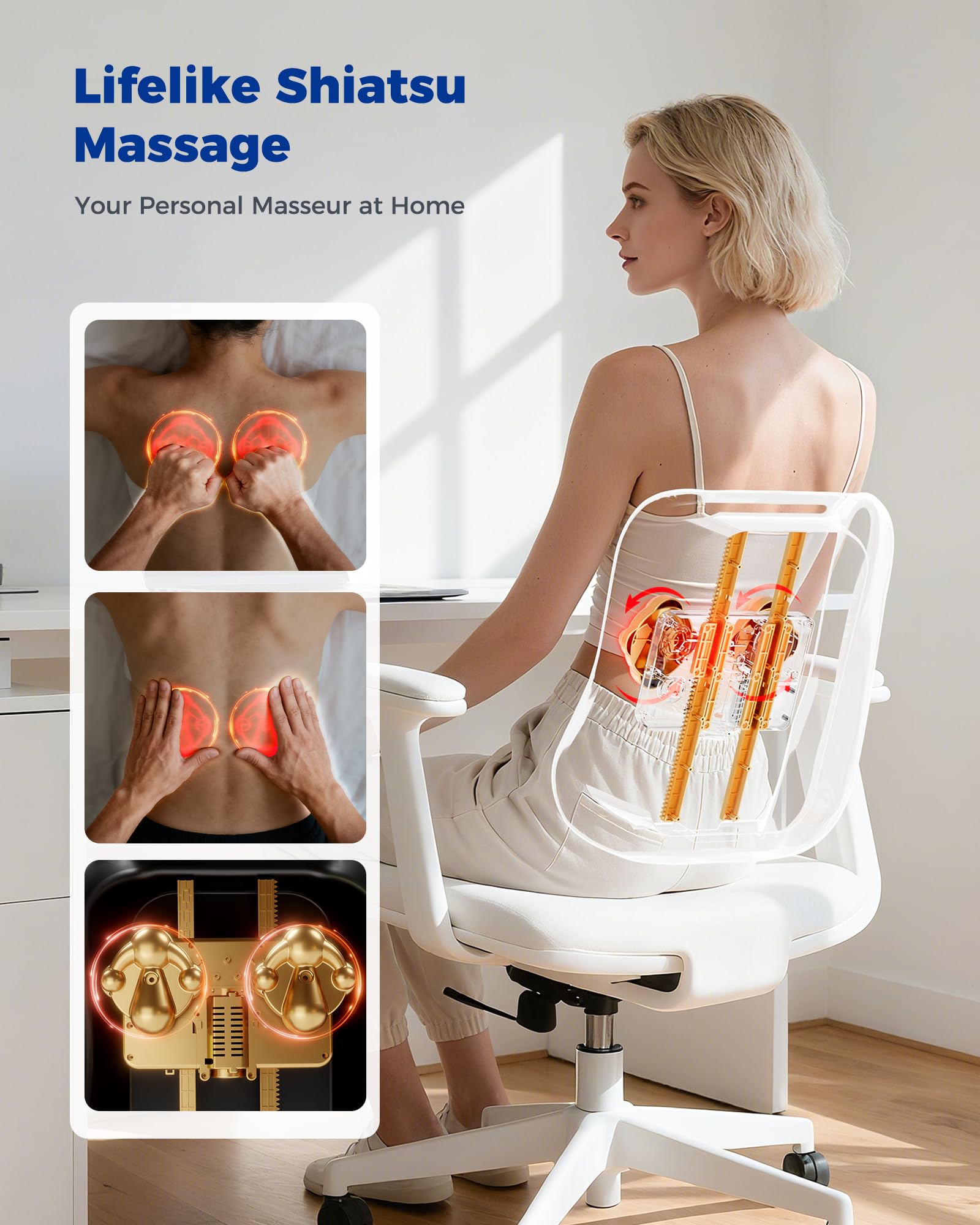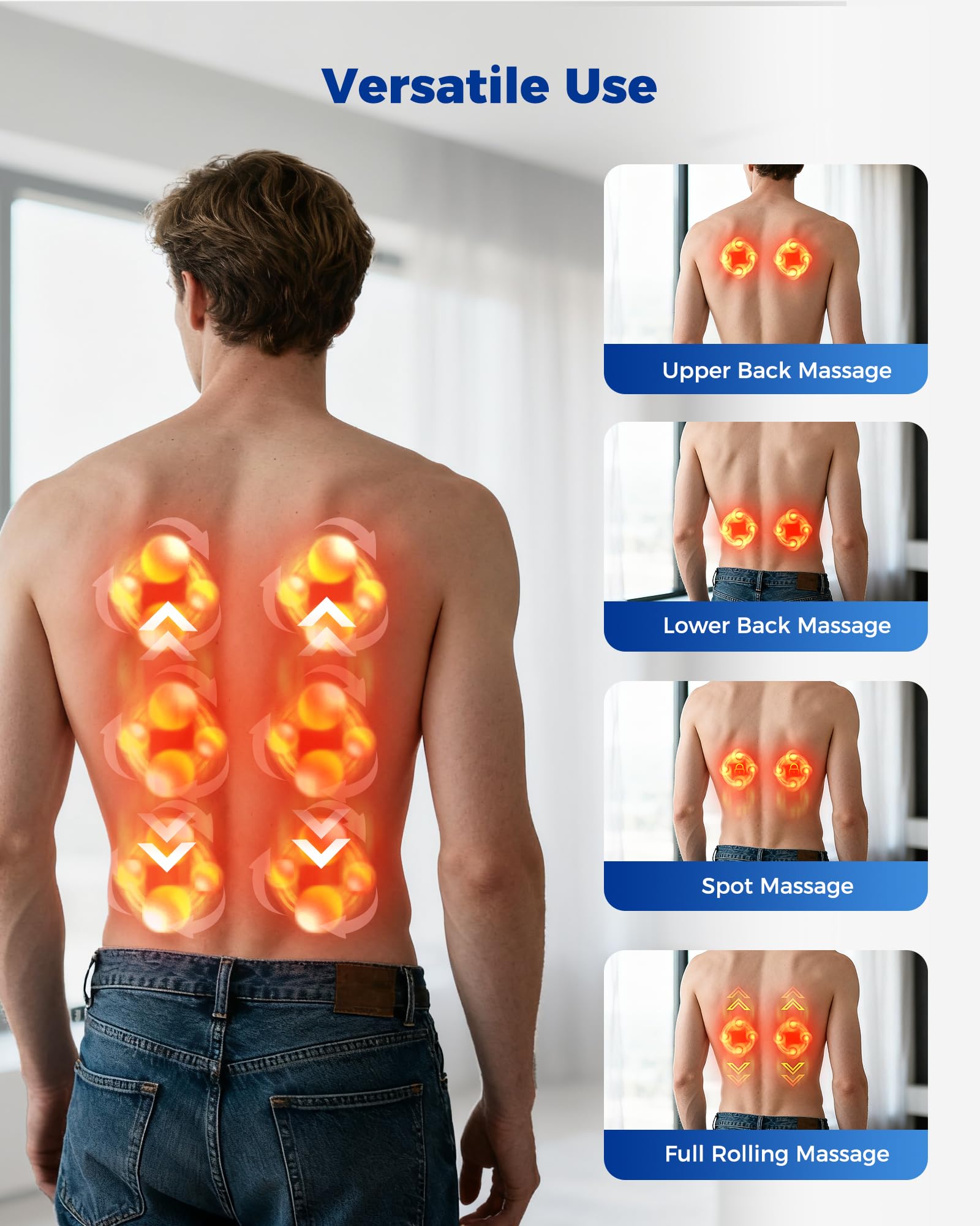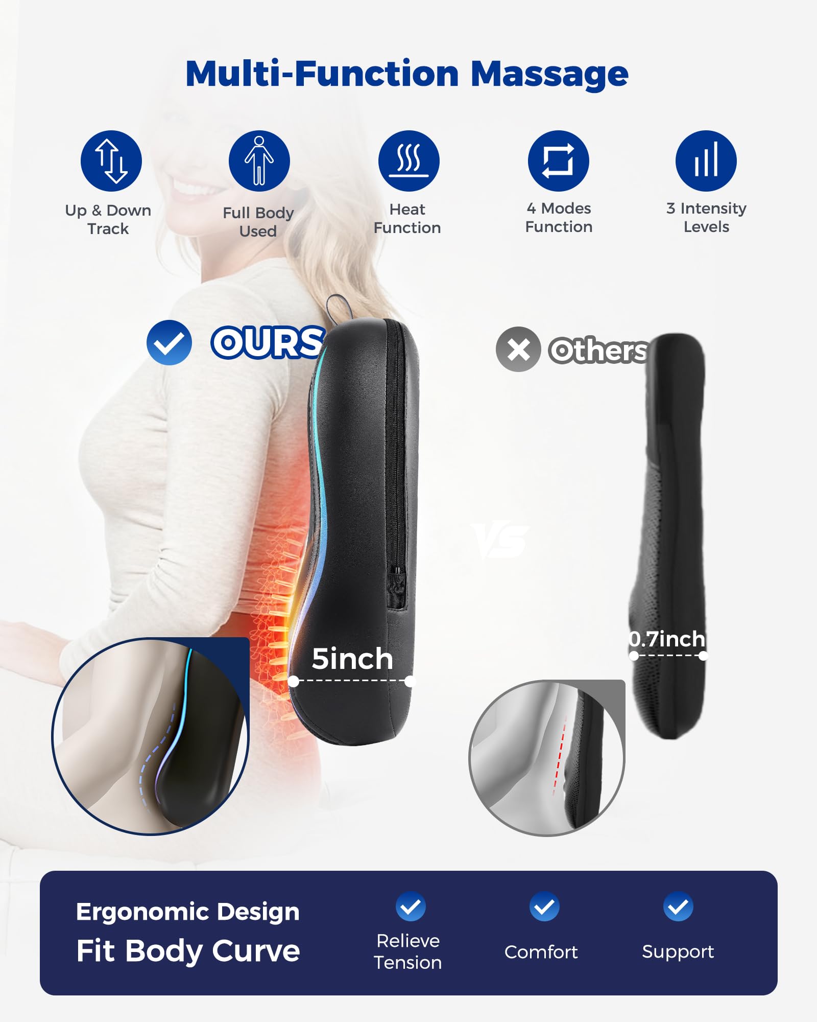 【Tailor Your Massage — Spot or Rolling, Gentle or Deep】This massager for back pain makes you experience professional grade relief with rolling up and down track+8 powerful Shiatsu 3D massage nodes designed to penetrate deep into muscles and tissues. Whether you're recovering from an intense workout or relieving the aches of a long workday, this deep-kneading therapy melts away stiffness and fatigue—so you can unwind like never before