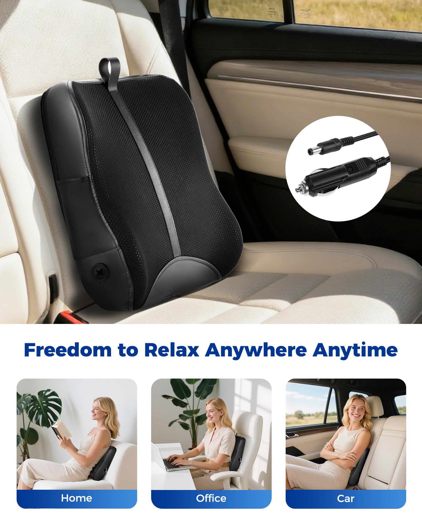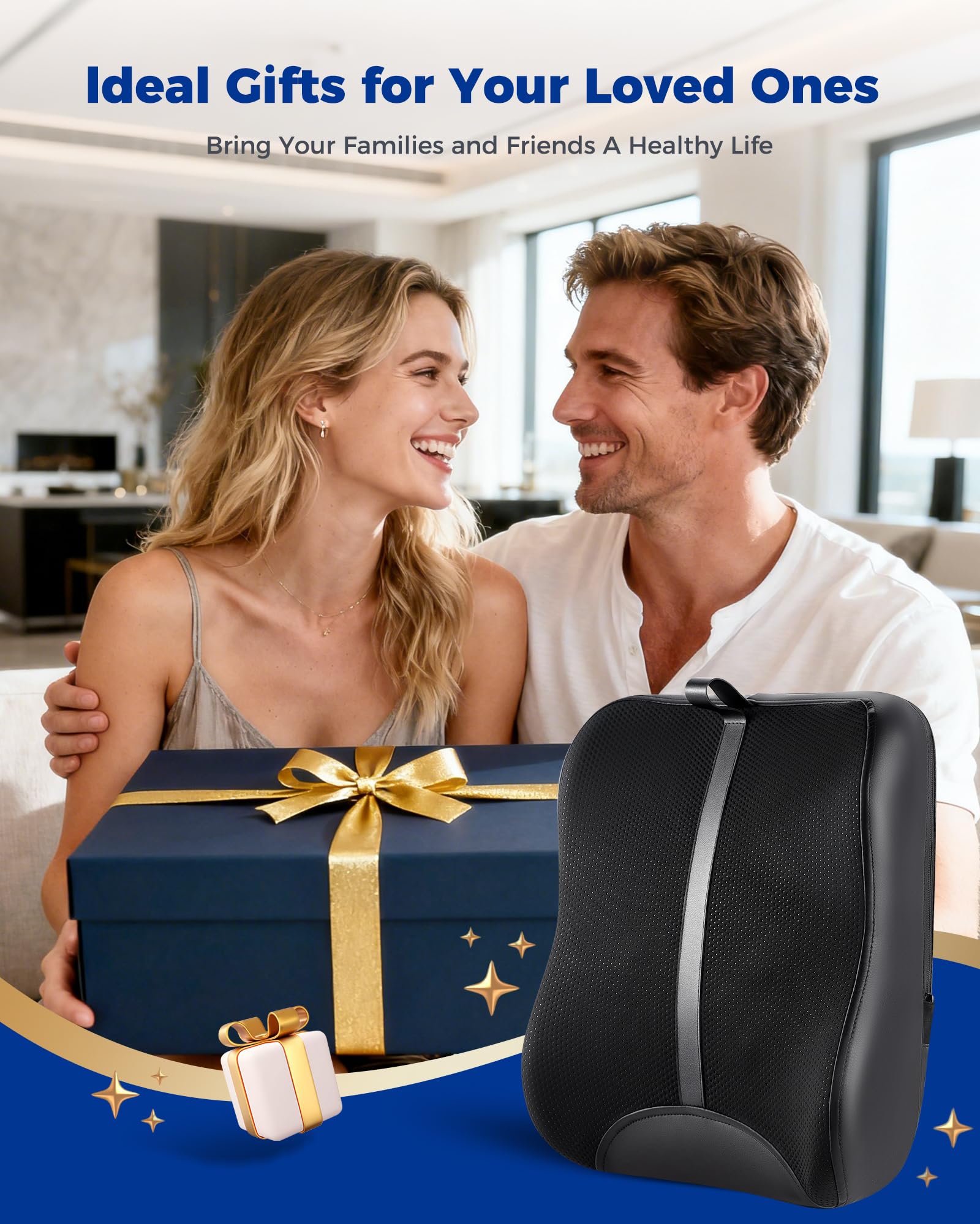 【Safer Use Notes & Gift-Ready】The back massager for chair bring you 15-minute auto shut-off with heat control for everyday use . Start on Low and increase only if comfortable . Use while seated and avoid placing full body weight directly on the nodes . Try to use it for less than 15 minutes each time . Arrives in gift-ready packaging for family and friends