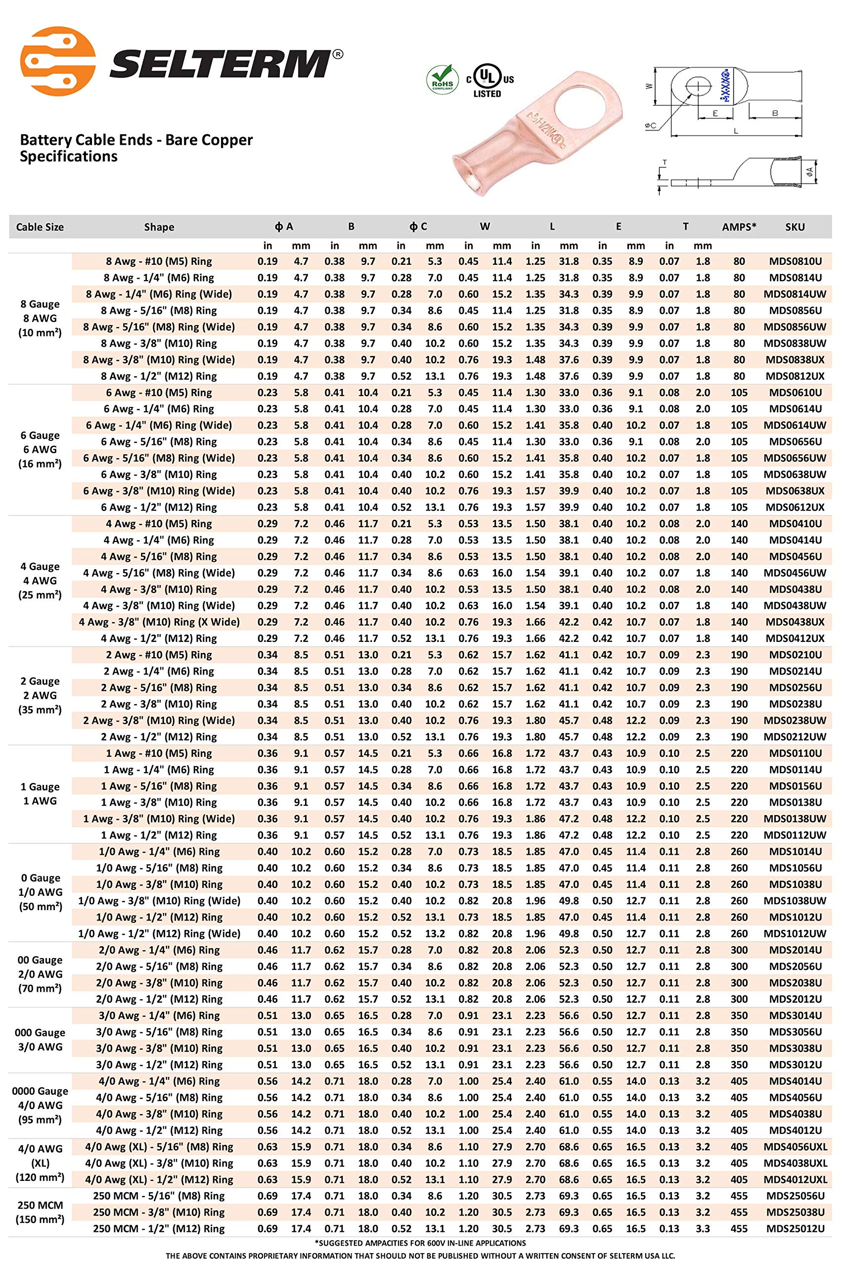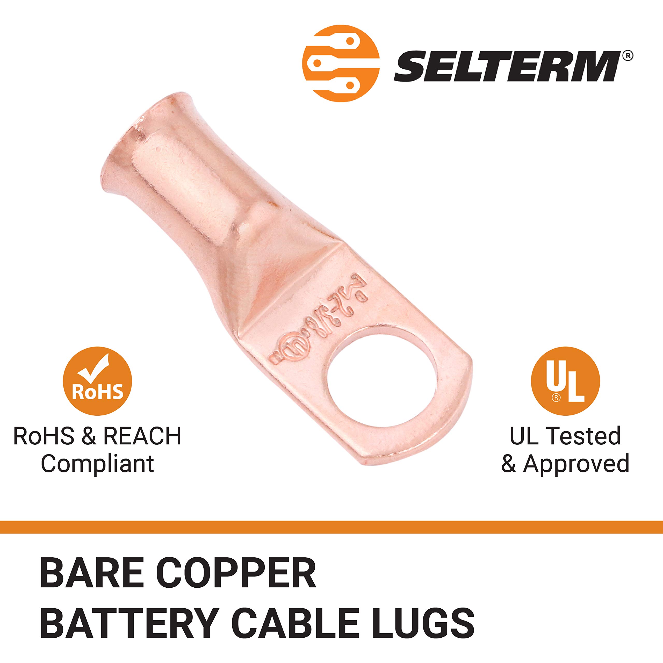 PERFECT FIT: Selterm provides freedom to choose from a wide range of wire sizes, stud sizes, and pack quantities from 2 - 25 pcs. best suitable for all requirements and applications as battery connectors. Superior material quality of copper terminals lugs can be crimped or soldered. Use with a compatible copper cable; Audio wire may not be a direct fit. Recommend to check product dimensions to ensure a proper fit of the connectors.