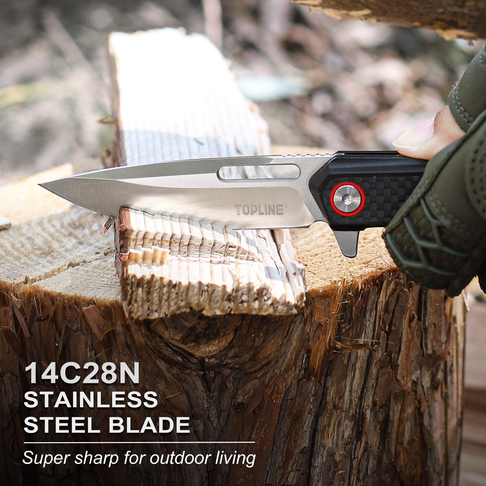 Premium Blade Materials: Featuring a 14C28N stainless steel blade provides superior cutting performance in complex outdoor environment. With black oxide treatment for added corrosion resistance.