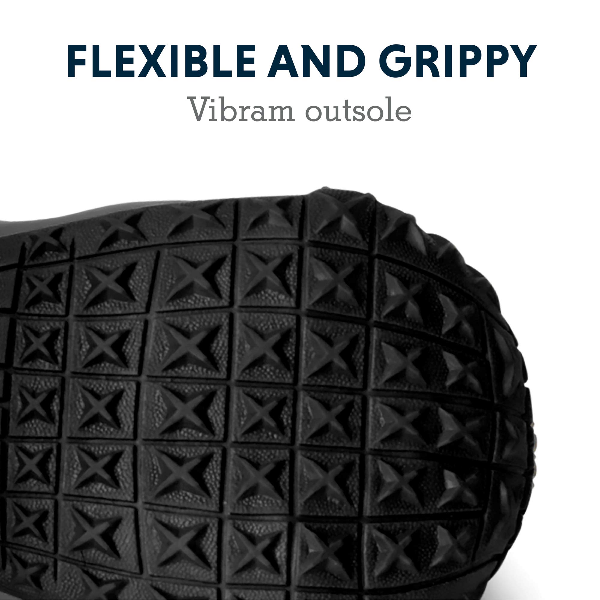 TRAIL-TESTED GRIP FOR EVERY TERRAIN. Built with rugged Vibram Outsoles for non-slip traction. Whether you're crossing hot pavement, slick tile, rocky trails or everything else in between.