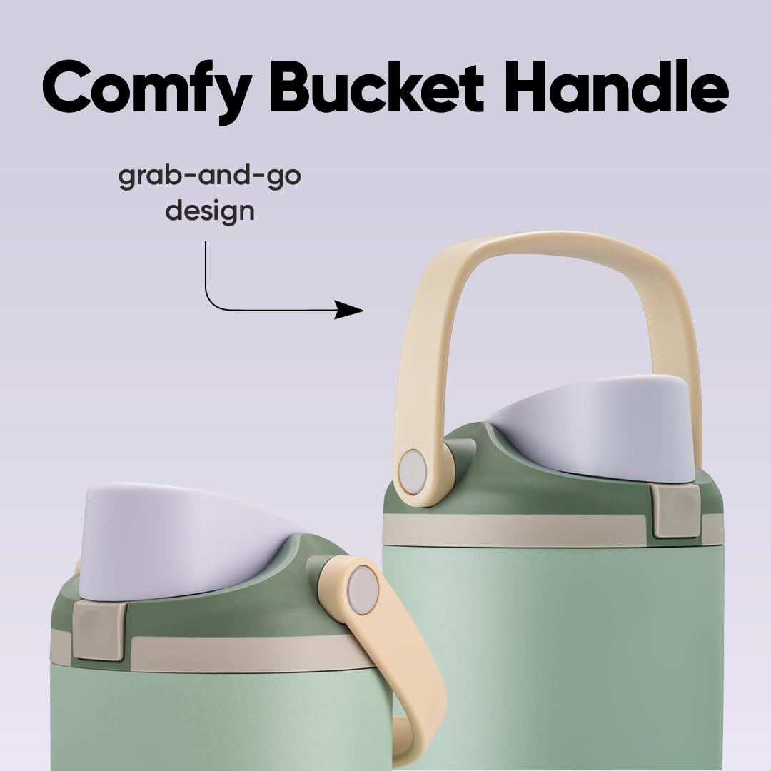 Hygienic push-button lid and easy carry handle: closed lid keeps spout covered and clean between sips; ergonomic bucket handle makes transport easy for sports, campsites, road trips, school, and work