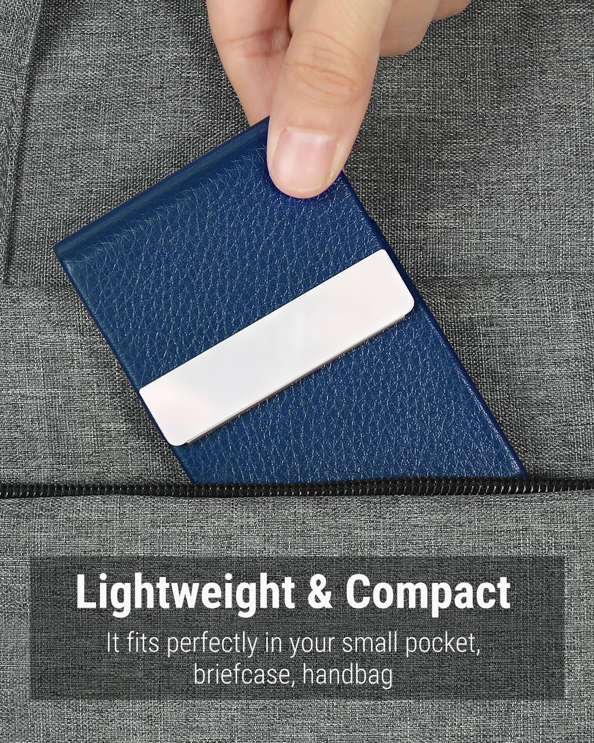 SLIM & COMPACT: Hold about 15-25 business cards (according to the thickness of your cards) or 4-8 credit cards. With a lightweight and compact design, this card holder easily fits in your pocket, briefcase, or bag.