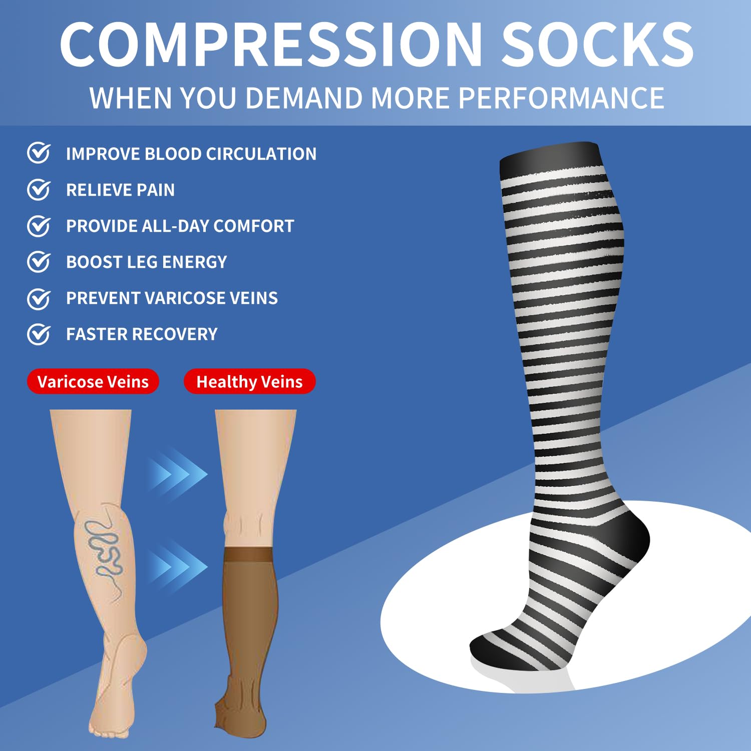 WIDE-RANGE BENEFITS: Increase and stimulates blood flow, working as a circulation booster. Swift and faster recovery from a hard marathon or a long flight. Clinical effectiveness in managing edema and DVT. Unisex Compression stocking use to prevent cramping muscles. Feel confident starting your everyday routine.