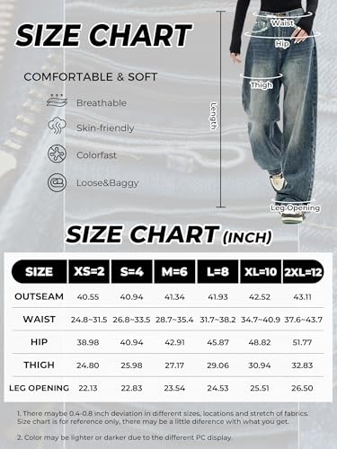 Boyfriend jeans for women come with 4 traditional pockets. Intentionally distressed design in the pockets' edges, providing these women's jeans with both style and function. Y2k baggy jeans with zip fly, button closure and belt loops for your ease of use.