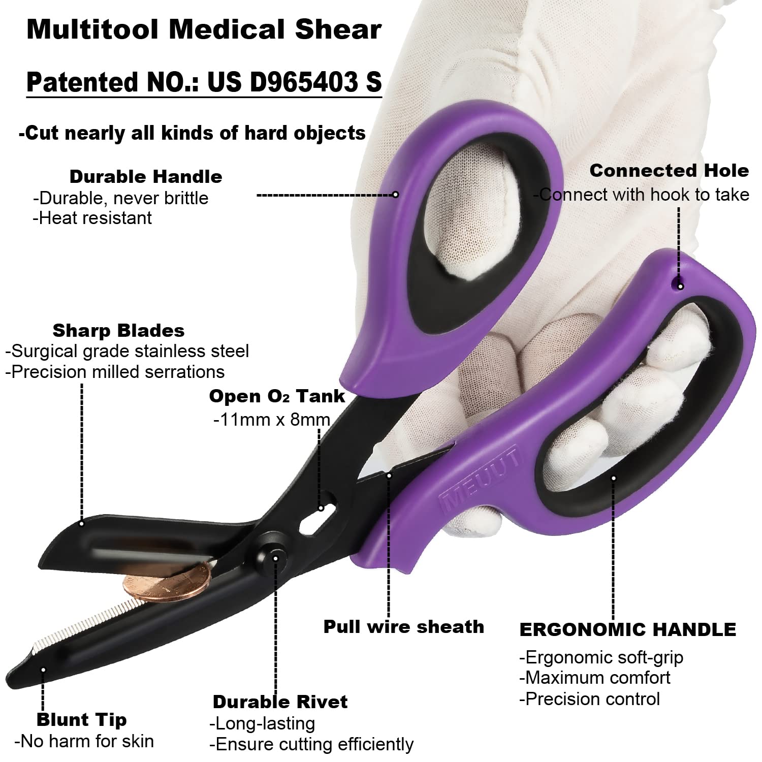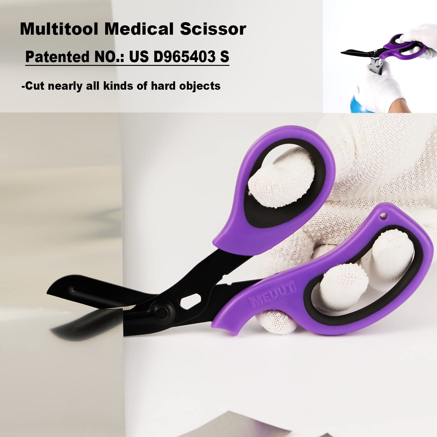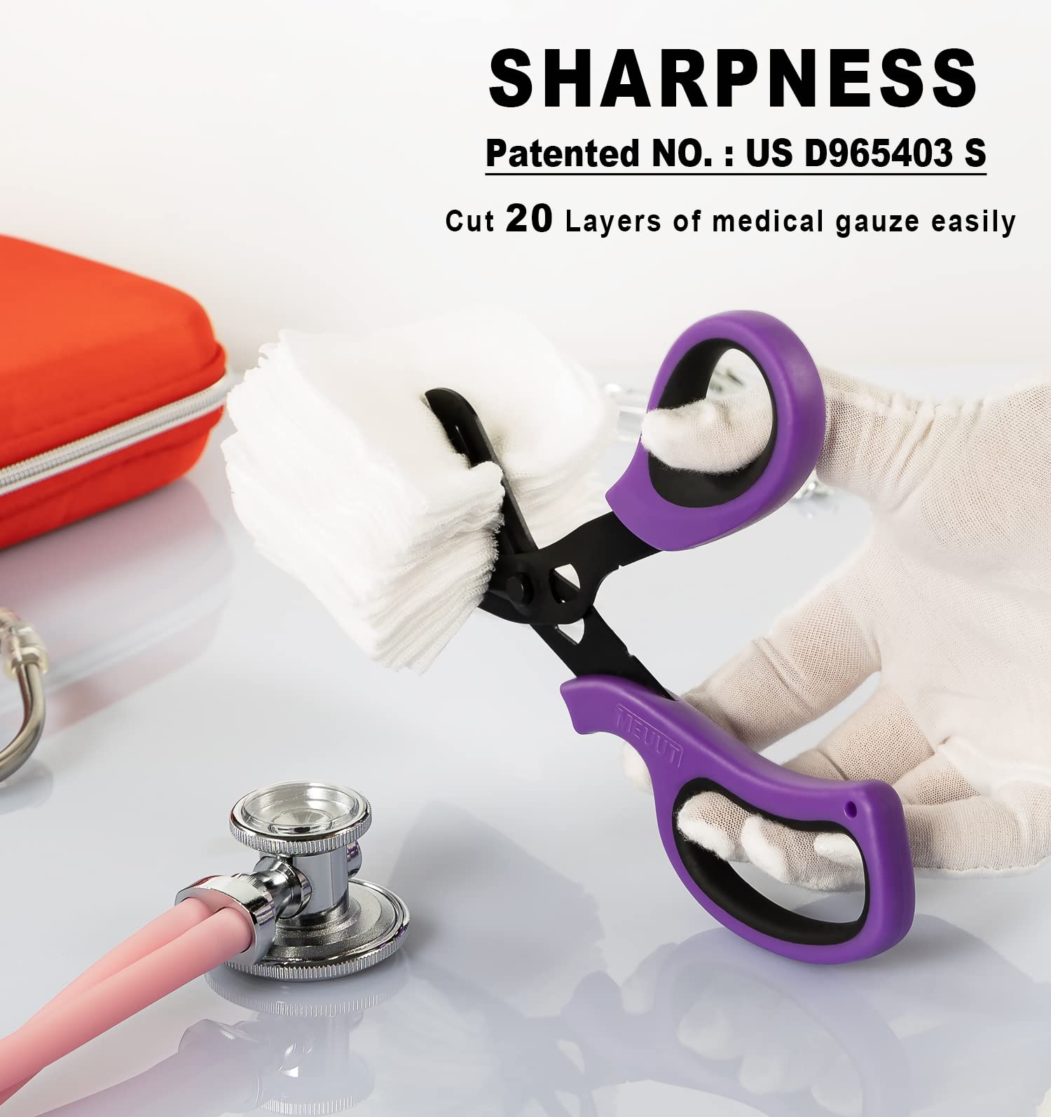 【PERFECT for FIRST AID】: 2 pack 8 inches patented medical scissors, Purple/light purple+Purple/light purple. Material: Stainless Steel 440, Polypropylene + TPE
