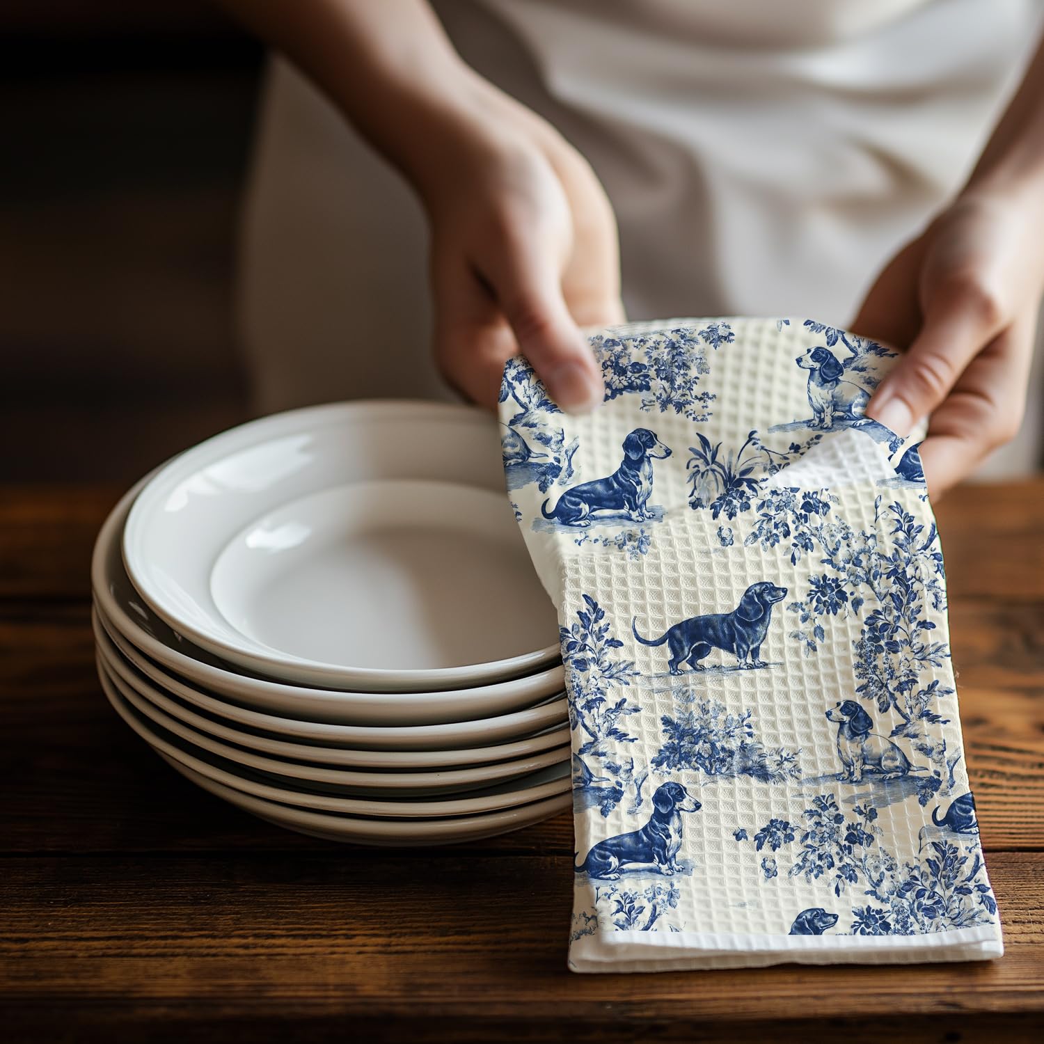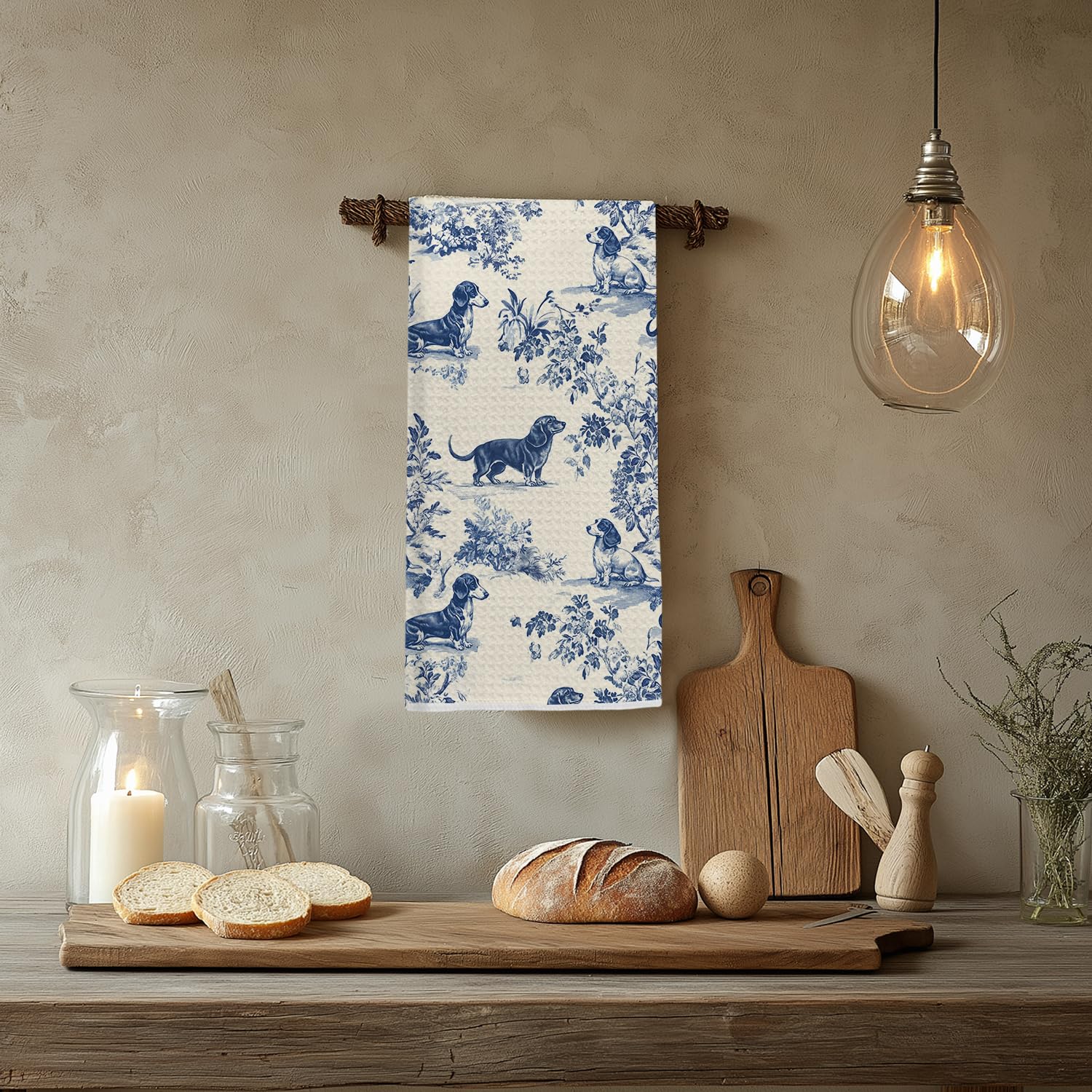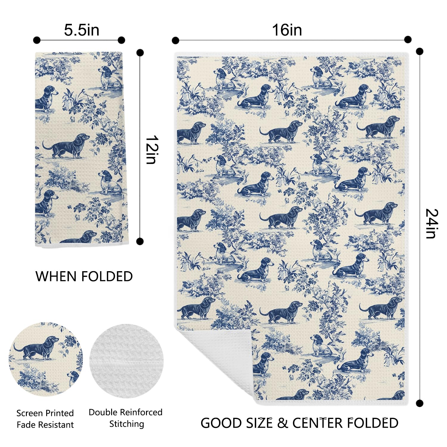 【SIZE】Our kitchen towels come in a handy 16x24 inch size, lasts a long time.Adorable vintage-inspired dachshund print in classic blue and white, perfect for adding a playful yet sophisticated touch to your décor.