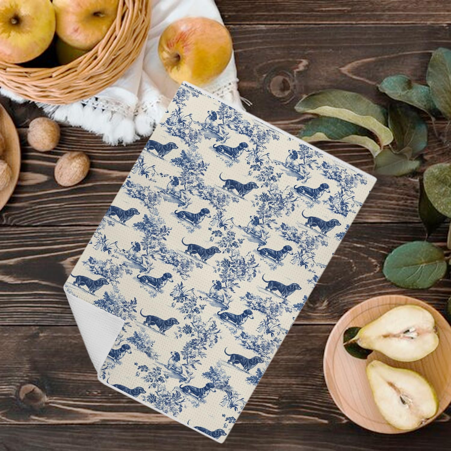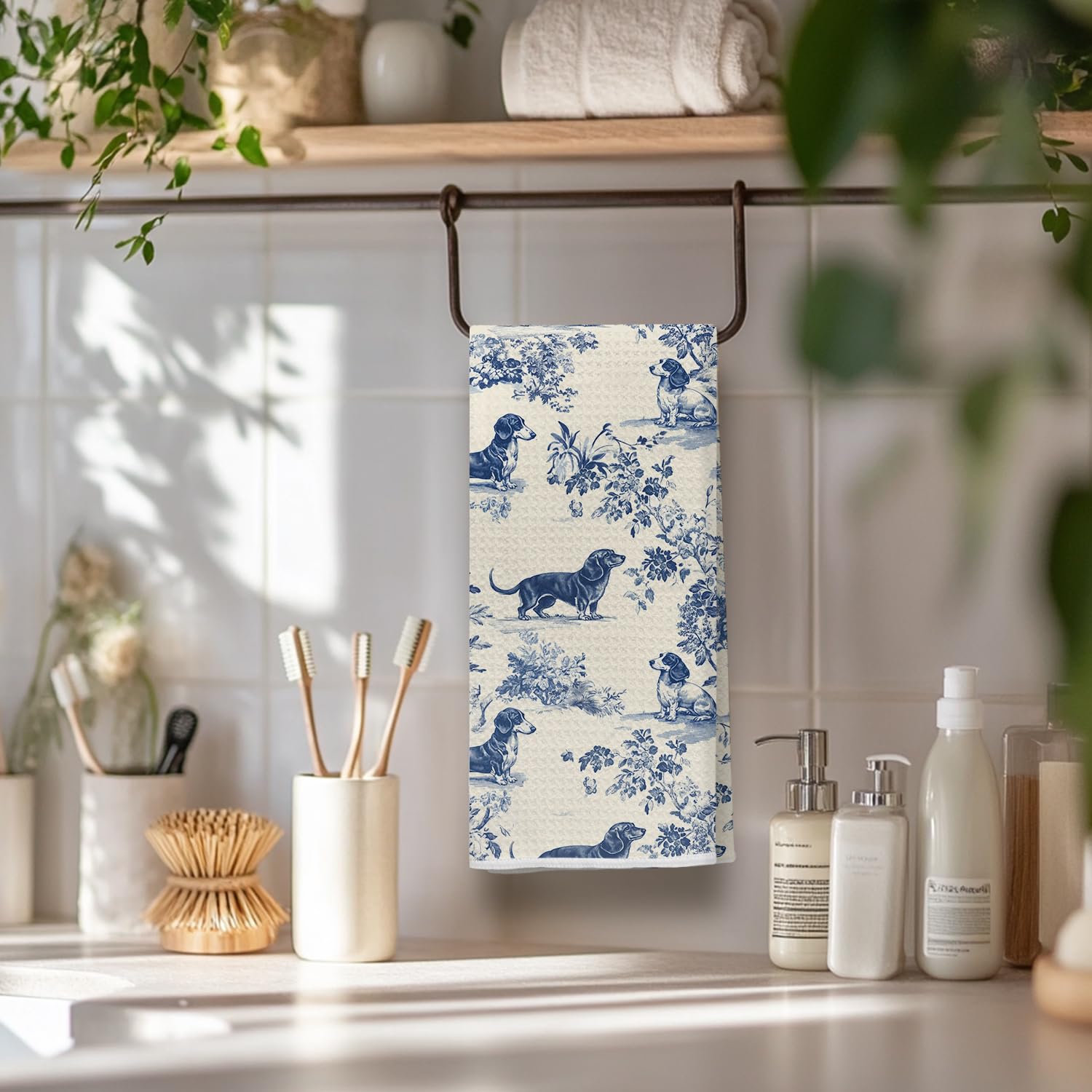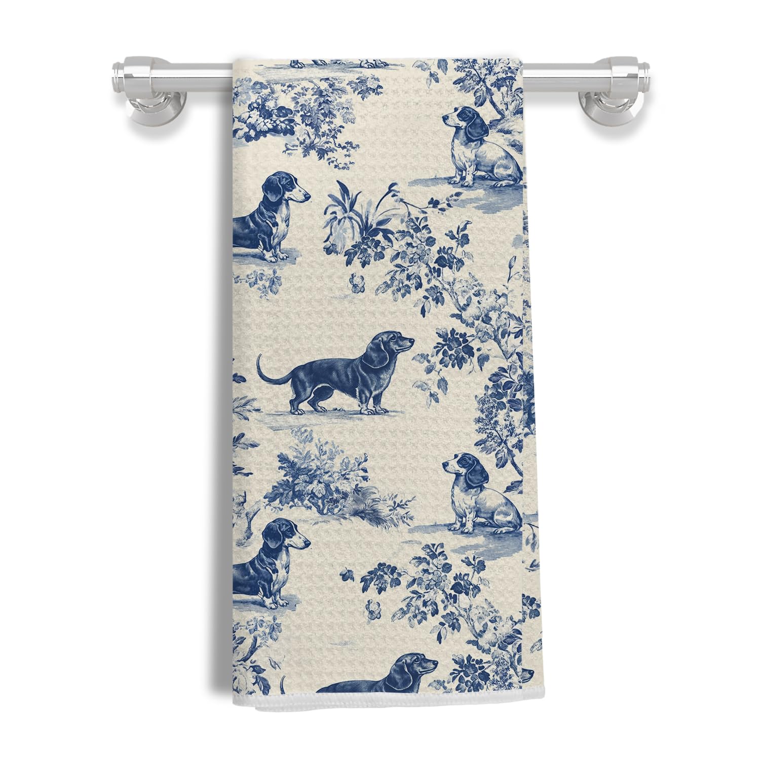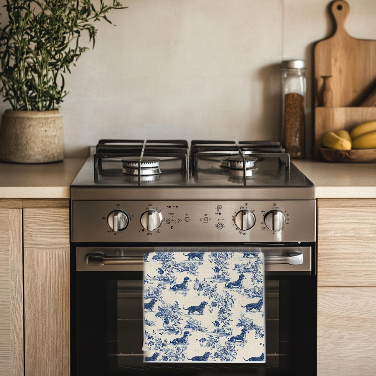 【SIZE】Our kitchen towels come in a handy 16x24 inch size, lasts a long time.Adorable vintage-inspired dachshund print in classic blue and white, perfect for adding a playful yet sophisticated touch to your décor.