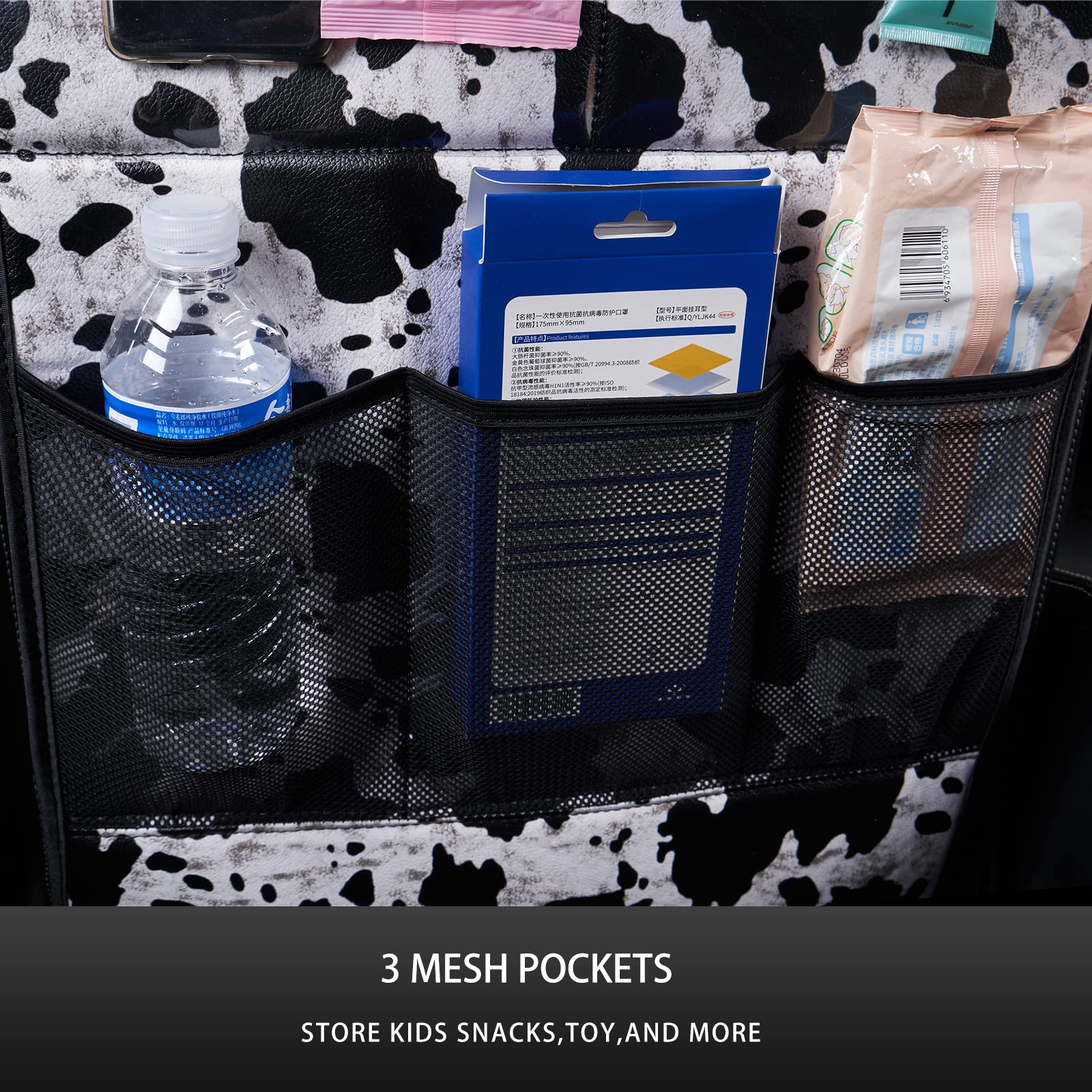 Organization & Storage:This item serves a dual purpose: safeguarding the back of the car seat and providing extra storage. It has various pockets that allow you to organize and hold items like toys, snacks, books, drinks, water bottles, and other such items. It helps to keep your children amused during car journeys.